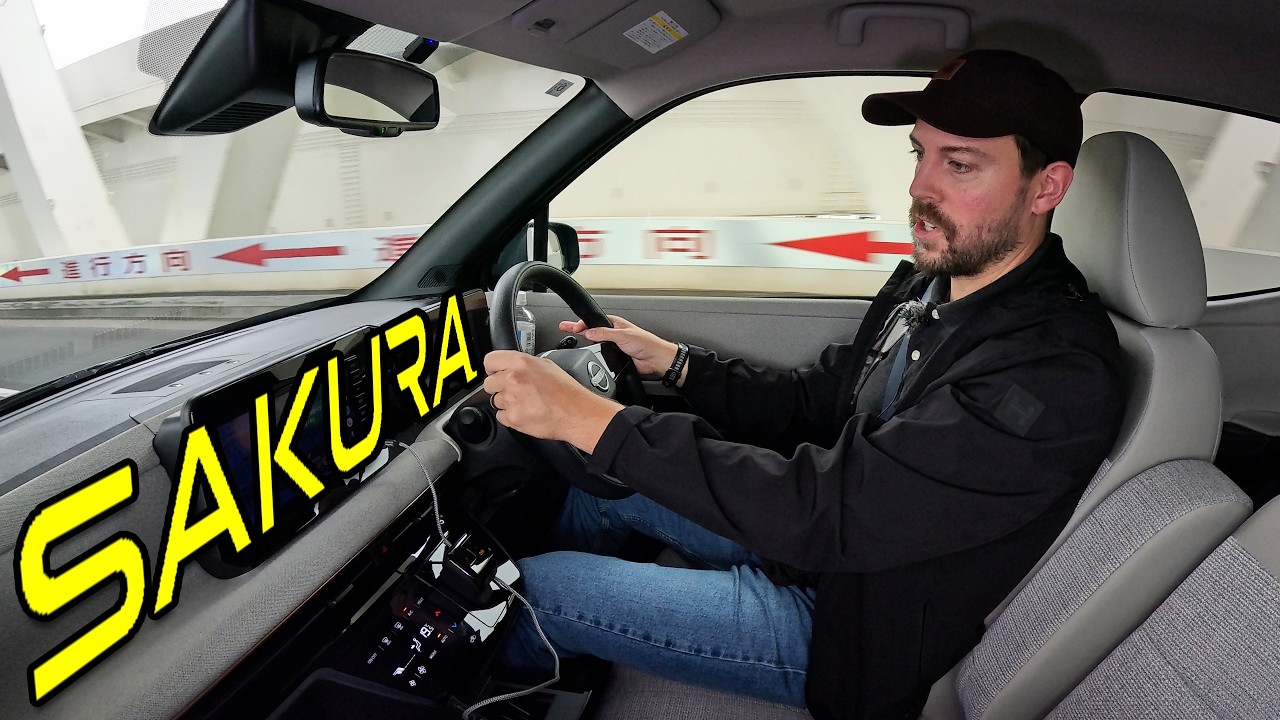 I’m at the Daikoku parking area. It’s a huge meetup, not only of big trucks, but I’ll put some pictures of some amazing cars that I’ve seen while here. I just drove through this. Um, so stay tuned to the end because I’ll show you um an R34 that I drove by and some other cool stuff as well. All right, but I am here visiting Nissan down outside of Yokohama. I’ve been to their headquarters. That’s where I picked up this cute Nissan Sakura, which is a fully electric K car. And uh I’m going to tell you what it’s like not only to drive a K car today, but I’m going to tell you what Nissan’s fully electric little mini car is all about as well. Um, you know, there was a cute purple one at Nissan headquarters. I kind of get the uh dreary wood brown color, but hey, I was trying to figure out what kind of size of wheels we have. Yeah, 14-in wheels. I think my Miata had 14-in wheels, but I’m sure these are skinnier. So, a K car has to be a certain height, width, length, weight. Did I say weight already? Um, it can’t have more than 64 horsepower. Uh, and it does, this is a popular car segment in Japan in order to uh be more affordable and it’s a lower tax bracket. What kind of cargo are we talking about here? All right. Well, let’s look at the the rear. And yes, uh I’ll show you what it’s like to charge this here in a little bit. But uh yeah, I love the light bar in the back. Super cute. Sakura 100% EV if you had any doubts. It’s not 95%. It’s not e power. It’s none of that. It’s It’s so funny. That’s 100 100% EV. All right. What kind of cargo space are we looking at back here? Oh, I’m so used to automated liftgates. You might be able to get a lot automated liftgate on the highest one. All right. Actually, decent amount of cargo space. I’m surprised a little fix a flat kit. So, uh as well as a charging cable. Um that’s kind of nifty. Uh I could fold down the seats and then have a huge box of a vehicle to stuff things in. Uh pretty fantastic. Fantastic. Uh let’s go ahead and uh Ooh, different levels of recline. That’s really really handy. Okay, these probably need to be about Oh, why is this one this one stuck? Oh, this slides the feet. Are you kidding me? This slides the the the seat forward. How cool is that? So you can have more cargo capacity if you need it. Oh my gosh. That’s the thing about K cars, man. They’re just so they’re so flexible. They make the most of their space, right? Space is at a premium here in Japan. And so they think of really unique ways to maximize the space with their automobiles, of course. Little two-tone here. Hard touch. Not that big as a surprise. All right. Uh nice cloth seats here in the back. Uh uh little mats down there. Big mat pocket down at the bottom. Two at the top. Real roomy. Real roomy. And I think there I think there’s a K car called the Roomie ironically. Uh I got some handles above a little light back here as well. No vents. That means too small of a car to need AC in the back. They do have cup holder uh on each side. Let’s go and get into the passenger seat up there and talk about well typically this would be the driver’s seat in America on the left hand side. All right. Uh let’s go ahead and close this. All right. Let’s go and start the car. There aren’t too many cars I’ve started from the opposite seat. All right. We get a little startup screen. There we go. Okay. That little speaker talks to you when you turn the car on and off. Um, okay. I love this dash. Look at the soft touch cloth. I like the uh little gold accent there. A little glossy black, but it doesn’t bother me. Um, this spot right here, it’s all touch capacitive, but the auto has been doing a great job. However, I mean, like it’s probably 65° out and cloudy, so the AC does not have to work hard. All right. So, I showed you the the pop out cup holder, E- pedal, which is the one pedal uh not exactly one pedal driving, but you get regen braking through the accelerator pedal. Uh and then down below you have two um little storage spots as well as a 12vt down there. Okay. Like the socket I’m at. And look at the seat. Super comfortable seat. And uh almost yeah, bench style seat, but you know, only this is only a fourseater car. Just keep that in mind. Uh, this K car is only a four-seater. I like this real cozy armrest. That is amazing. This is how armrest should be done. Oh, it’s a pillow. Okay, let me slide on over to the driver’s side. Something that this car can afford me because I have this little pass through here. Um, this car doesn’t have navigation, which is fine with me. You just, you know, plug your phone in. Uh, and I’ve been using my Android Auto uh through the one USBC in this car. However, with the 12vt, you could um you know, plug in plug in some accessory power. Here’s the bottom uh glove box, upper glove box, like the vent over there. I didn’t mention that. Auto dimming mirror, I think. That’s nice. I don’t have blind spot monitor here. Um the steering wheel is plastic. Uh let’s go ahead. Well, and look at this. This is I just know this is kind of a dummy uh side. There’s no um cruise control. I mean, you’re in a K car. you really need it. Uh you’re not going to be more than likely driving at long speeds on the highway. There’s a little crown crossover. That’s what they call it here. In America, for some reason, they call it a sedan. I I don’t know. It Toyota doesn’t even know what to call it. Okay. But, um I love the touchpad here to just go through your different uh screens. Uh 9 kilometers per kilowatt hour. I’m used to miles per kilowatt hour. Um uh and it’s going down because I’m just sitting here running the AC. Oh, that Prius has a body kit on it. That’s pretty cool. All right, so rest in peace Subaru Legacy. It’s hard for me to stay focused because this is just a a a car hot spot. Um and yeah, uh this this is kind of like the regen area. Another Pr