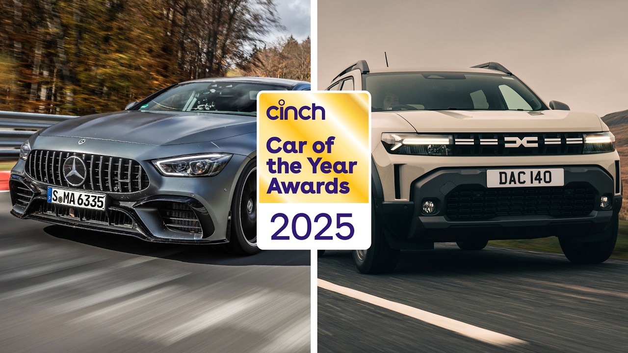 2025 has been a massive year for cars. New players have stormed in. Old favorites like the Ford Capri and Rena 4 have returned, and we’ve been behind the wheel of just about all of them. But now it’s crunch time, the moment we pick our favorites. These are the cars that blew us away the most this year. Welcome to the 2025 Cinch Car of the Year Awards. Let’s go. Kicking us off, we have the best hybrid car category. The hybrid is becoming more important than ever before for eco-conscious drivers. They’re not only increasingly efficient, but they deliver the best of both worlds, balancing petrol and electricity perfectly. There have been some fantastic hybrid cars launched this year, from the new Kia Sportage to Toyota’s latest IGO X. But one stands out above all the others, and that’s why our best hybrid car of the year is the Volkswagen Golf E Hybrid. This plug-in hybrid is everything that’s great about the standard Golf, but takes it up a notch with an 88 mile EVon range. Plus, the new Mark 8.5 waves goodbye to those pesky touch capacitive controls and returns to physical buttons. What a relief. And while the Golf is our go-to, if you want a bit more interior space, we’d recommend the boxy and retroooking Hyundai Santa Fe or the striking Peugeot 508 for that bit of family SUVess in your life. Speaking of SUVs, our next category is for the best large SUV, a class featuring many of the most popular cars for British drivers. But size isn’t the only thing that matters here, because we Brits also pride ourselves on finding a true bargain. And it doesn’t get much better than our best large SUV winner, the Dacer Bigster, which ticks both boxes. We drove the new Bigster in the Alps and were impressed with its off-road capabilities, level of tech, and interior space, which we tested thoroughly by sleeping in it overnight. But aside from that, its starting price of just £21,820 and massive 677 L boot is why it makes for such a great large SUV. As for our runners up, we’ve chosen the Volkswagen Ton because it’s everything that’s great about the Tiguan only bigger and the Citroen C5 Airross. Because if you want a smooth riding, practical SUV, it’s hard to beat. If you’re looking for an elevated driving position, but don’t want to feel like you’re driving a small tank, you may be in the market for a small SUV. Of all the new small SUVs launched this year, the Scoda Lrock stood out the most to us. It’s everything that’s great about SCOD, offering clever storage solutions and a comfortable ride, but without being too serious. We like to think of it as the trusty family dog. It’s dependable, predictable, and just keeps plotting along. Except we’re not entirely convinced a Labrador can walk 360 mi on one charge. Want something a little different, though? Then we’d suggest the new Volkswagen T-Rock, which we were really impressed with when we got a sneak peek at it out in Germany a few months back. And a car is equally bright yellow, the Ford Puma Gen E. The Goldilocks option of the small SUV segment is the perfect size for a small SUV. It’s very efficient with a claimed 5.4 m per kowatt hour and is familiar just like the petrol pummer it’s based on. While SUVs are massively popular, the humble hatchback is having a bit of a renaissance in 2025 as can be seen by the sheer number of new models launched. Our winner for the best hatchback category goes to the Renault Cleo Hybrid. Now the Ford Fiesta is no more. The Renault Cleo Hybrid is one of the few remaining old school hatchbacks for sale. We can’t get enough of its fantastic hybrid system, its manual gearbox, and how beautifully it drives. So, when Renault showed off the brand new Cleo at the Munich Motor Show, we knew it would take the top spot. Sadly, the new one won’t grace our roads until 2027. But it’s not that sad because the current one is still an absolute gem. In second place in our hatchback category is the surprisingly spacious Hyondai Insta. It proves small doesn’t need to be stingy, offering all the tech you could ever want while having a unique seating setup, allowing you to turn it into a bed. No, we’re not joking. In third spot is the Alpine A290, the performance version of the Renault 5, which we gave an absolute thrashing around a racetrack. 220 horsepower, upgraded suspension, and rally inspired headlights. Need we say more? If you like your fast cars, you’re going to want to pay attention to this next category for the best performance car. 2025 has been full of new sports cars, and we’re not talking about the Ferraris and Lamborghinis of the world, because let’s face it, they’re out of reach for most of us. Instead, we’ve chosen three cars that are genuinely enjoyable to drive, and despite being far from cheap, aren’t anywhere as expensive as a brand new Italian supercar. Our best performance car winner is the new Mercedes AMG GT63. Having technology that’s filtered down from its F1 team, the GT63 is one of the finest road cars you can buy. It’s Mercedes way of saying, “Oi, Porsche, we see your 911 GT3, but raise you this instead. It’s not cheap, but close to £200,000 from new, but it all makes sense when you fire up that 4 L V8 and tackle a corner. My god, does it stick to the tarmac. It’s like it’s on rails thanks to that clever active arrow to help it stick to the road.” But another superb option is the new BMW M5, which might just be one of the greatest sports saloons ever made. Now, with a wacky 727 horsepower and a competent plug-in hybrid system with up to 43 mi of EVon range, it’s the best of both worlds. Or if you want a bit more electric range, go for something like the Lotus Amea. With 95 horsepower and a naugh to 62 mph time of just 2.78 seconds, it blew our minds, especially on some bumpy British B-Roads, which it handled excellently. Arguably the most important category this year is that of the best electric car. With so many new bra