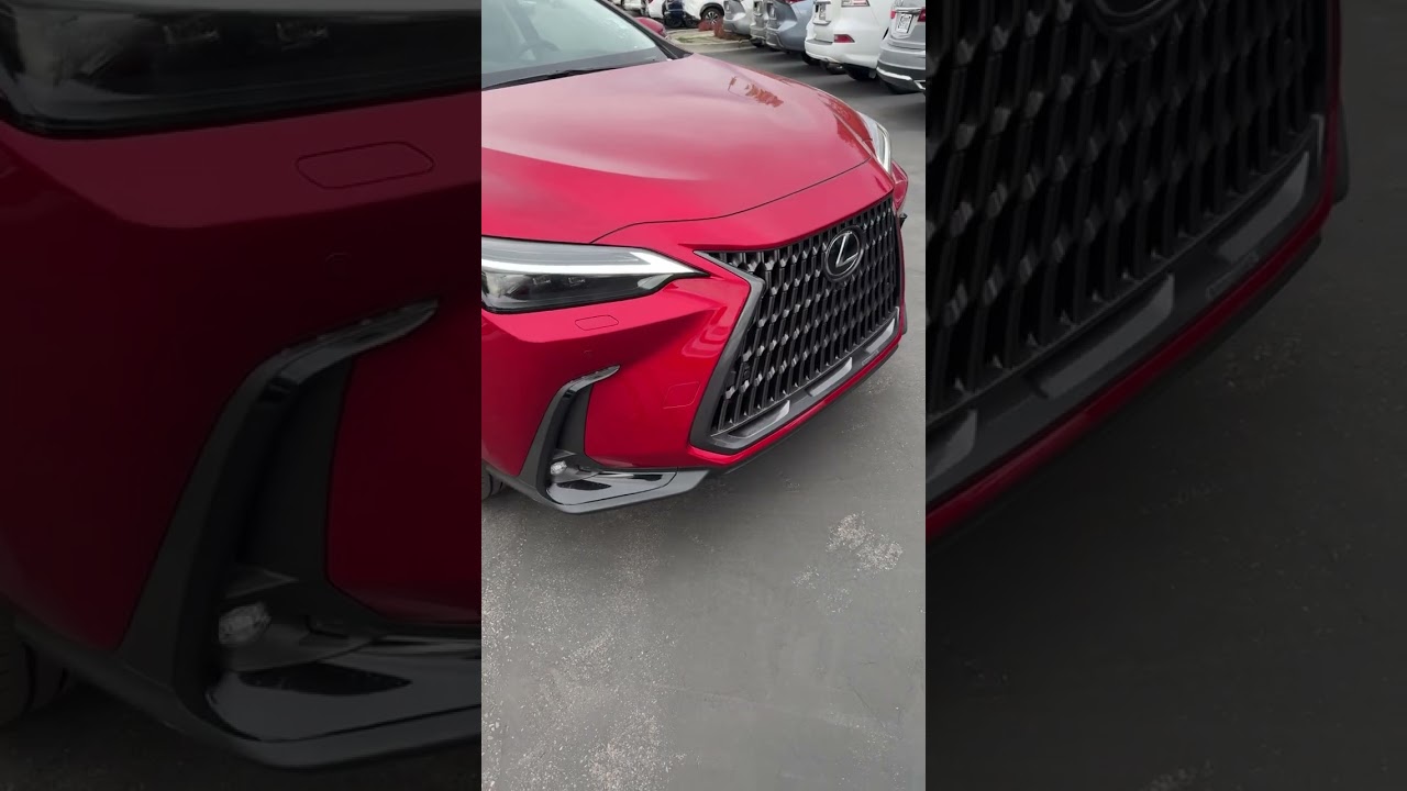Let’s take a look at the NX plug-in hybrid. This produces over 300 horsepower and can get almost 40 m on a charge. Look, it’s a Lexus grill that’s proportionate. I also like the red on this one. Pretty nice looking wheels and then a lot of elements are painted or have chrome. Decent cargo space. You also have pretty good passenger space, too. Lexus’s newest infotainment system that integrates the climate controls and then you got more of that beautiful white interior. Subscribe to the full review.