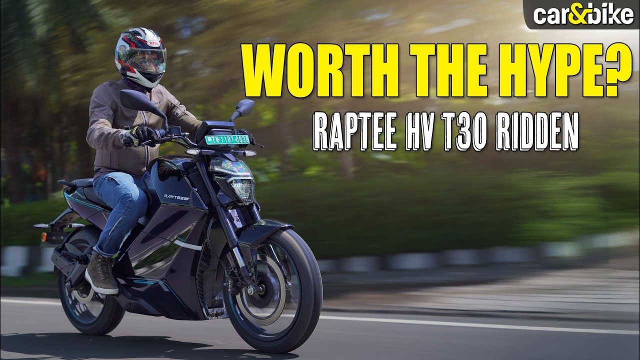 [Music] Range anxiety, charging hassles, practicality, reliability and price-to-performance. Those are some of the biggest reasons many motorcycle riders hesitate to switch to electric. But a young Indian startup called Raptee HV wants to change all those things about the way people perceive electric motorcycles. This is the Raptee HV T30, the brand’s first electric motorcycle priced at Rs. 2,39,000. The T30 aims to make EV ownership smarter, simpler and practical for everyday riders. In this brief review, we’re trying to check out if this homegrown electric motorcycle has got the capability to transform the Indian motorcycle landscape with an electric bike that’s built for everyday use, entertaining performance and practicality. Does it manage to impress? That’s what we intend to find out in this first ride. But before that, if you’re new to our channel, please do consider liking the car&bike channel. Hit that bell so that you get notified every time we ride an interesting motorcycle like this. I’m Preetam, welcome to car&bike. Let’s get down to checking out the Raptee HV T30 in more detail. The Raptee HV T30 has sharp aerodynamic lines and an aggressive stance. It looks packed with performance, even at a standstill. The LED headlamp gives it that futuristic edge while the sculpted bodywork and minimalistic tail section keep things muscular yet sleek and sporty. And it’s offered in four distinct colours, Arctic White, Eclipse Black, Mercury Grey and Horizon Red, across two variants with only minor cosmetic changes. Subtle but with attitude that is certain to grab attention. So yes, that’s what the T30 looks like. It’s not really a sport bike, sport bike, neither does it intend to be a sport bike. It’s a commuter but performance in mind. So the ergonomics are quite friendly. It’s got an upright straight handlebar. So you sit upright, foot pegs mid positioned, not too rear set. And talking about ergonomics, the seat height is 790 mm. So it’s easily accessible to riders of different height. Kerb weight is 177 kg. So it’s not a very heavy bike. So anybody, you know, upgrading from a smaller bike, like a 150 cc petrol-powered motorcycle, can easily handle it in terms of the weight and in terms of the seat height. So the riding position is quite comfortable as you can see. And that’s what it looks like. What do you think of the design of the T30? You let us know in the comments. Overall, I think the design is neutral, not very flashy, not very sporty, not very plain Jane boring as well. It has got a unique identity to that end. I think it will grab some attention on the streets. The USB of the T30 is its high voltage fast charging. Plug it into a 15A home socket and you are charged from 20 to 80% in just an hour. The charger is light and compact, easy to carry and to store. But the real power move is the CCS2 fast charger, the only one on an electric two-wheeler in India. Charge it anywhere, you charge an electric car and hit 80% charge in just half an hour. And when it comes to peace of mind, Raptee’s got you covered. The T30 packs an 8 year or 80,000 km battery warranty, plus a 3 year or 30,000 km standard warranty on the bike itself. Now onto the design. The proportions and stance are on point, but look a little closer. And yeah, there’s still room for improvement in fit and finish. These are the first lot of production bikes however. And quality at some things, small small details could have been better. The clamp on the handlebar finish could have been better. The handlebar overall finish of the handlebar could have been better. The grab rail finishes also could have been better. And the paint is chipping at some points that could have been better. And panel gaps are not consistent. That could have also been improved considering these are already production models. But the management tells us that in future course, these are the first 1000 bikes that we are riding today. And in due course of time, all those feedback that we give on the first lot of motorcycles will be taken into account and they will be improved in due course of time. So there are small niggles on the Raptee HV T30, but we do hope the company will address those issues. And we have been told that the company will look into those issues specifically. Now it’s got a 7-inch TFT console. It’s built around what’s called a new OS, which is Automotive Linux Grade OS. And it has got maps. Initially on my test bike, the map function wasn’t working. The GPS wasn’t working, but it just took a few minutes to reset the OTA and it started working fine. So niggles, yes, but it works completely. It has three ride modes. You have Comfort, which is primarily for city use. You have speed limited to around 65-66 kmph. Then you have Power where you have decent enough acceleration, but range will drop there. And you have Sprint where you get the full performance. And we’ll talk about the performance in a bit, but those are the things that you get. Switch gear is quite nice and some of the functions are not functional as yet. There’s cruise control buttons here, which are not working right now. Cruise control is not offered as yet, but in due course, perhaps in the next iteration, next update of this motorcycle, in some time, cruise control could be offered as well as this function switch, which doesn’t work right now. Switch gear quality is quite nice. The levers could have had span adjustability, considering the price of this motorcycle. That would have lent the premium touch and also practicality to riders of different size of hands. For my hands, the lever reach is quite okay, but span adjustability lever could have added that premiumness. The rear view mirrors work well, visibility is alright, but the stocks don’t lend that amount of premiumness to a motorcycle, which is costing almost Rs. 2.4 lakh, ex-showroom. So those things could have been improved to give it some more premium appeal.