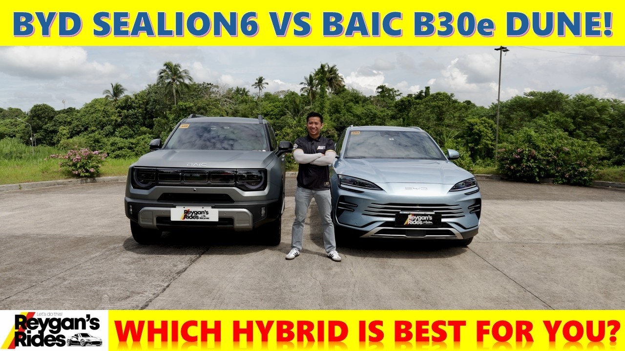 Last 2024, we saw the arrival of two of the most compelling hybrid SUV options in the Philippine automotive scene. The alluring BYD C Lion 6DMI and the Macho Bike Berte Dune 4×4. Now, a lot of people are considering between these two hybrid SUVs. So, in this video, we will find out which is the best car for you. Let’s do this. Heat. Heat. For most people considering a midsize SUV with a hybrid powertrain, the two most prominent contenders are the BYDC Lion 6 and the BAK B30E Dune. The main reason why these two are paired in the short list would be the price segment that they fall into. But they also represent two far ends of the hybrid spectrum with the BYDC Lion 6 rocking a plug-in hybrid electric system while the Bike B30E relying more on a traditional hybrid electric vehicle setup. So with that in mind, which of these two hybrids would fit your needs more? Time for us to find out. Here [Music] at Reagan’s Rides, we do car reviews of SUVs, sports cars, trucks, and everything in between. So, subscribe and hit the bell. [Music] All right, mga dude par. So, it’s been a while since I’ve had an actual comparable video, but just like before, we will stack up these two SUVs against each other depending on the following categories: value, uh, exterior design, cabin materials, tech, and safety, cabin space, and of course, the drive. Now, at the end of this video, we will have a clearer picture as to which hybrid SUV is the best for you. So, without further ado, let’s do this. [Music] The BYDC Lion 6 shocked everyone with its phenomenal price tag coming in at 1,548,000 Philippine pesos, making it the most affordable PHEV at that time, which further boosted its popularity. Now, add to the fact that it also comes with 100 km worth of pure EV range. So that means that if you’re just driving around the city and you get to charge at home, well, you get practically zero fuel cost. So because uh we have uh nearly zero fuel cost here and of course that lower entry price. Well, the BYD Lion 6 takes five points in the value category. Now this, my friends, is the topsp spec bike B30 Dune 4×4. Uh in fact, this is my personal bike B30 Edune 4×4. Now, this, my friends, retails for 1,888,000 Philippine pesos, which is significantly higher than the entry price of the Sea Lion 6. However, though, there is a base trim P30 Edune 4×2, which retails for only 1,488,000 Philippine pesos. Now, that my friends is significantly lower than the entry price of the BYDC Lion 6. Now, here’s the thing, though. Uh, the B30 Dune is a hybrid electric vehicle. This is not a plug-in hybrid electric vehicle. So, when you’re driving it around the city, you can expect to use a little bit more fuel than that of the Sea Lion 6. So, because we are going to consume more fuel in city driving with a B30 Dune and we have a higher uh entry price for this topsp spec 4×4 trim, then the bike B30E 4×4 can only get four points in the value category. The bike V30 Dune rocks a rugged and macho design here that is well a reflection of the company’s tagline which is dare to drive big. You see we have a really boxy silhouette here complemented by its wraparound LED DRLs on the front grill as well as its full LED headlight units and fog lights for this 4×4 trim. Now, we also get 19-in alli wheels there just like the Sea Lion 6, but it comes with thicker um highway tires in this B3 Dune. Now, M dude, well, looks are subjective, but since I prefer the macho and rugged look for my SUVs, well, the bike V32 gets five points in the looks category. The Sea Lion 6 gets a sleek and sexy design here that kind of calls to mind the design of the Porsche Cayenne. Now, that my friends is not surprising because the current designer for BYD also designed that German SUV. Now, we get these squinty LED headlight units here, plus LED DRLs, plus a lot of these lines on the front grill that kind of reminds me of the whiskers of an actual Sea Lion. We also have 19inch alloy wheels here just like the bike B30, but the lower and sleeker profile of the C Lion 6 makes it look a lot smaller than the Bike B30. Now, it also has a regular crossover shape, which means that it also kind of blends into the crowd a little bit more. So, because it doesn’t really stand out as much as the Bike B30, well, the C Lion 6 can only get four points in the looks category. [Music] The B30 Dune has off-roading roots which explains the simple and plasticky interior. Uh we have soft touch materials in the hightra areas but the overall feel is still more towards uh well durability uh rather than plushness. Now we have heated and ventilated leather seat here and a leather wrapped steering wheel. Although the quality of the leather that they use is still well a notch lower than than the one found in the Sea Lion 6. Now, as such, well, the B30E Dune only gets four points in the cabin materials category. The Sea Lion 6 has a well sorted and premium looking cabin here with gorgeous heated and ventilated leather seats and a leather wrapped steering wheel. Now, the cabin materials that they use here also feels premium to the touch and it really looks more expensive than the ones found in the bike B30 Dune. And because of that, my friends, well, I am pretty jealous of, well, the owners of the BYD Cine 6 out there. So, because we have a plusher cabin experience here and plusher cabin materials than the bike B30, then the C Lion 6 gets five points in the interior category. Now, the Sea Lion 6 is a tech lovers dream with wireless Apple CarPlay and wireless Android Auto, as well as a 360°ree view camera image and this awesome looking rotating touchcreen. Now, we also have BYD’s DLink app here, which uh Oops. Yeah, we also have that the voice command uh which the B30 doesn’t have. And we also have the Dlink app which you can uh you know can operate some of the features. Uh yeah yeah yeah you’re so maling cancel. All right anyway where was I? So yeah we have that DLink app where you