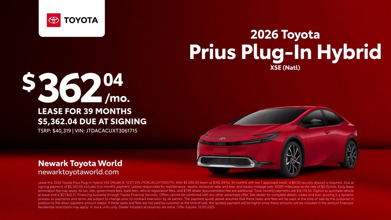 Toyota Prius Plug-In Hybrid 11/07/2025 6420661 Discover your new Toyota right now at Newark Toyota World. Come see the latest lease offer on a 2026 Toyota Prius plug-in hybrid. The search is over. Visit us today at Newark Toyota World. [Music] Electric CarsElectric VehiclesEVHybridHybridsPlug-in HybridsPlug-in Hybrids VehiclesPlugInpriusToyotaRelated Posts All you need to know about Ford’s electric vans January 13, 2026 PHEVs Pollute Worse Than Gas Cars If They Aren’t Charged Up January 13, 2026 Volkswagen Reveals Flagship Luxury ID. Era 9X PHEV SUV In China January 12, 2026 Stellantis Pivots From PHEVs to Hybrids and EREVs in North America January 12, 2026 Car giant swings the axe on PHEVs January 12, 2026 “These 5 Plug-In Hybrids Make EVs Look Complicated” January 12, 2026