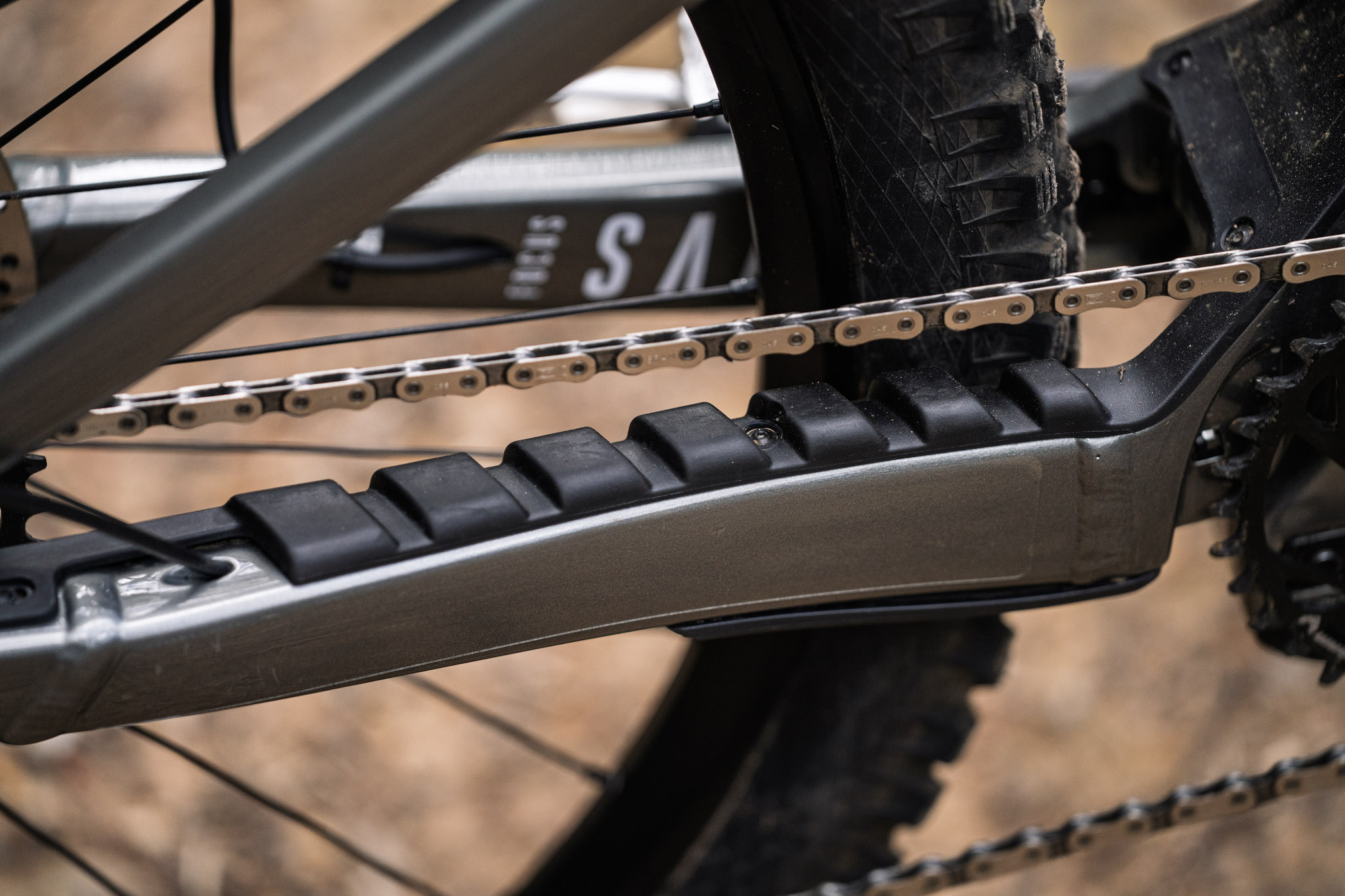 The package as a whole is near silent when hammering downhill — even the freehub has a muted, subtle buzz. Apart from a headset creak from day dot, which was sorted with a dab of grease, it seems like a tight, tidy package. The execution and finishing details are impressive, and the chainstay protection would rank among the best we have seen. The gooey, rubber blobs are super soft and soak up any impacts from the chain to keep things nearly silent.