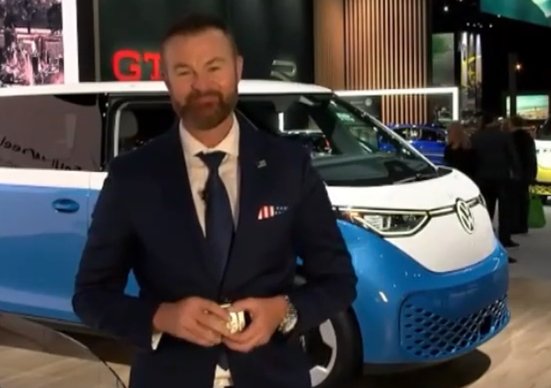 Volkswagen has restored a classic VW bus that survived the Palisades fire, showcasing it at the show as a symbol of resilience and recovery. The company has also debuted the ID Buzz, an all-electric modern version of the iconic bus.