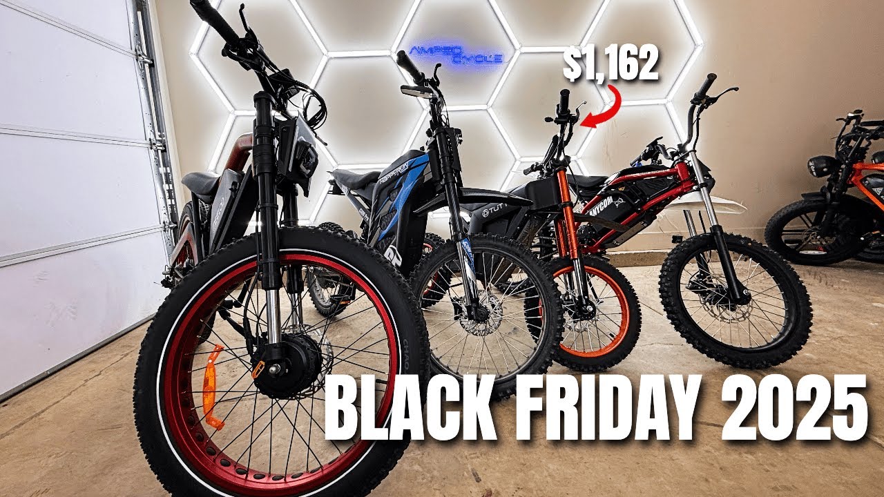 It is almost Thanksgiving and you guys know what that means. No, not hanging out with your family. It means Black Friday and that means buying stuff off of the internet that you don’t need. So today we’re going to be going over some of the best Black Friday deals that I have found for ebikes for Black Friday 2025. So first off on the top of our list, and this list is going to be in no particular order, by the way. I’m just kind of going off the cuff here, but at the top I’m going to keep ones that I have personal experience with that I’ve either bought or reviewed on the channel. So, first off, we’ve got the Tudio Soil01, everybody’s favorite. So, they’re having a Black Friday sale where it is $1,225 with my coupon code amped cycle. I will leave the link down below for you guys to go check that out. If you’ve been waiting on getting a Tudio, this could be a good time to get on the Tudio bandwagon here. And as far as my personal experience with it, I have a bunch of videos on the channel. It’s actually sitting right here behind me, but I have a ton of uh videos on the channel with that bike, and it’s a good bike. I got off to a bit of a rocky start, but if you guys want to see my full videos, I will leave them all linked below. All right, so next up is Mad. So Mod is a pretty cool company. We’ve got uh the DK300 Max and the XT600DL. So, they are doing $100 off of the DK300 Max with code BFDK300 Max. I’ll leave that down there so you guys can just copy and paste it. And then $200 off of the XT600DL, which I just reviewed and put up a video the other week on the channel. Code for that BFXT600 DL. And again, I’ll leave that link down there so that you guys can just copy and paste that. Overall, Mod makes some really cool bikes. I’ve been really happy with my DK300 Max and my XT600DL. Um, both dual motor bikes. Next up, we got the DTTZHF6, which I recently checked out, and that was a very, very good bike. I was very surprised with the value for money on that bike. And I checked out the 200 watt uh 48vt version, but they also have a 60V version, which has a 5,000 W motor, which I’ve heard people getting up to almost 40 mph on that thing. And I’ve heard people um comment that they’re very happy with that bike. 48 volt version is going to be $790 with my coupon code James Climus. It’s just my name. I’ll leave it down there so that you guys can copy and paste it. The F6 5000 watt is $129 off again with my coupon code James Climus. All right, so another one that I found after recording the video is the F3X and the F4X from Ghost Cat. You get $150 off the F3X and you get 200 bucks off the F4X. These are some really powerful bikes and they are really cool. So, it’s nice to see them get uh get a little bit of a deal here for Black Friday. Pretty reasonable price for the amount of performance that you get on these bikes. They are really powerful and really quick. If you’re looking for some crazy performance, the Onyx RCR 80 volt 45 amp hour battery is currently on sale for $48.99. That’s $200 off and uh free shipping as well. With that, you get a 18 kW max power output. I think top speed’s like 75 miles an hour. So, this thing is a crazy powerful bike and it is on sale. If you’ve been waiting to jump on the Onyx RCR, now might be a good time cuz you get a little bit of a discount and free shipping on this thing. Our next deal for Black Friday is going to be Havsco. The one that really stood out to me, and this is probably one of the best deals on the list, is you get a Hoff Scout, which I don’t have any experience with. I’ve never reviewed it, and you get a free scooter and a folding 14-in bike. Um, you can’t use my discount code with it, but it’ll automatically apply that at the cart. Um, my code is amped for the other bikes. You can use my code to get a discount on those. But that is a really good deal for a fat tire um kind of like mountain bike type ebike. But they’re including that 14inch bike with it and an electric scooter. So that’s just a really cool deal. I think they’re doing a deal for um $2,000 for that whole package. So our next deal is the TSTR2, which I just uploaded a video on. They’re doing $6.99 with code amped. I don’t think they have any crazy Black Friday deals. That’s the same price that it was when I made the original video. But still a good deal for a great ebike. I was very happy with it. Up next from Magician Bikes. Um I haven’t had any Magician bikes, but I’ve heard really good things about them. Hopefully I’m can get my hands on one in 2026. They have the Magician Alpha up for $400 off, so it’s only $21.99, plus you get a free front basket valued at $199. The Magician Atlas is $600 off. So, you get that for two grand, 1,999, plus a 29in wheel set that they value at 400 bucks, plus a rack, fenders, and a light set, uh, worth another $199, they say. Then the Magician Alpha Mini is $300 off. They are retailing that for $22.99 and you get a free dropper seat post, which is pretty cool to see. The next one is from Anycom and is the AnCom BB1, which I just made a video on recently, too. You guys can see it back there. really really sick looking dirt bike. Um, it is a mid drive bike that has a pedal kit that they include with it and I think that’s pretty cool even though you are not fooling anybody cuz that thing looks like a straightup dirt bike. Um, I was really happy with it. If you want to see the full video review, I have that on the channel. Um, they’re currently running a 10% off deal for Black Friday, but you can actually get an extra $10 off with my coupon code. So, you’re better off using my coupon code AC200 and you get 200 bucks off. So, next up is HighKEA. Everybody’s favorite. Um, I reviewed a ton of HighKEA bikes this year. The ME, the K6T, the uh I forget the other one, but they’re really, really good bikes. Uh, I was really happy with them. Great value. Um, I don’t think the