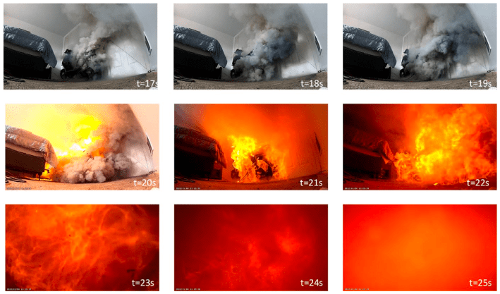 Photos from a study conducted by UL Solutions and FDNY of a lithium ion battery blowing up. Photo: UL Research Institute