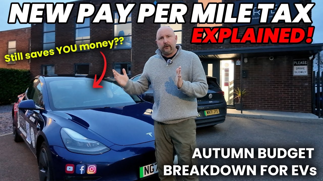 Rachel Reeves has just finished the autumn 2025 budget and so we’re still digesting what that means. But one of the big talking points especially relevant to us is the effect on electric vehicles. You’ll hear the terms that a 3 pence per mile charge is going to be levied on electric vehicles. So what is that? Why? And exactly how will that compare the running cost in the future of an electric vehicle to say a petrol or diesel? Also, I think I may have some good news about this Tesla Model Y, which would have incurred the premium car tax levy next year, but in fact now probably won’t. So, that’s what I’m going to talk about in this video. So, firstly, 3 P per mile is going to be put onto electric vehicles. I’ve got some numbers over here I’ve been running. Now, it has only just finished. We are about an hour after the budget and I’ve been on the phone as well. Um, but I’ve been running some numbers to get an idea of exactly what that means for running costs of electric vehicles because of course I think straight away we’ll see a lot of stuff in the media about electric vehicles now costing more to run than petrol and diesel and things like that. So I want to just get at least an initial idea or handle on what this might mean for you and should you buy an electric car in the future. Well, of course you should because it’s the right thing to do. don’t have tailpipe emissions. So it is better for the environment around us. You got to remember that petrol and diesel cars they do pollute and that is a poisonous gas that they let out. I mean people commit suicide by breathing it in. So we want to enhance the transition to electric vehicles and not penalize the transition to electric vehicles. One of the big motivators for changing to electric vehicle is the savings that you can make in terms of running cost. I’ve always quoted that at the moment, based on my cheap overnight electricity tariff at home, £10,000 mi of driving in a Model 3 Tesla, like any one of these, costs around about £160 in your electricity cost for 10,000 miles. Compare that to the cost of petrol and diesel, which is a lot more. In fact, that’s been one of the factors in here. But why is the government imposing the 3 p per mile charge? Well, a lot of people don’t really think about it much, but in the petrol and diesel that you buy, the government charge for fuel duty. They get tax taken from that pest cost that you pay for the petrol at the pump and they earn quite good money out of that. But if you have an electric car, you’re not doing that. So, they’ve been losing out a lot of money because less people are going and filling up at the petrol pump. So, therefore, the cost per mile essentially they’re losing out on. And the government doesn’t like to lose out on money and they’re rather short of money. There’s rather lots of borrowing going on and let’s not get too political about where the money goes to. Let’s focus on the EV side of things as much as we can. As a business owner, I’ve got a few other opinions, but I’ll probably gloss over that for now. That’ll probably be another video. Actually, I probably shouldn’t. Anyway, electric vehicles. Um so I’ve created a couple of tables here again initial figures but one is to compare the cost of running an electric vehicle to petrol diesel for you the consumer for putting the you know uh fueling your car versus charging your car at home also the tax you pay because road tax has been imposed on electric vehicles now as well. So whereas we used to have zero road tax, there is no road tax. Bearing in mind in all this, if we go to cars uh which owned by business and allow for private use, a company cars, there’s still massive savings to be had with electric vehicles there. So if I forget to touch on that later on, then don’t forget that there’s still massive savings. But just in terms of running cost, let’s just say you, Mr. Smith, are going to buy an electric car. So roughly speaking, for a petrol car averaging about 36 miles per gallon, and yes, I know there will be cars that do more than 36 miles per gallon, but that’s the average according to AI search engines and such like. At an average price of petrol these days, the cost of fueling that car for 10,000 mi is going to add up to about 1,79. So I call it just over 1,700 for a diesel car. It’s taken the average real world of 43 miles per gallon. Uh I know there are diesel cars that can do more than that. This is an average of £1,511 you’re going to be spending on fuel for you the consumer, the end user. However, if you have an EV and it’s using an average of 3.5 miles per kilowatt hour, which I can do better than that as well. You might be saying you can do more than 43. Well, I can do a lot better than 3.5, but again, it’s taking an average. That is going to cost you. It’s allowed £200 here for your uh home energy charging. If you’re going to charge just at your standard domestic rate without any overnight EV discount charges, it’s going to cost you about £752. So £200 the normal situation if you can charge at home at night on cheap energy versus 1,700 odd pound for petrol, 1,500 for diesel. Now, if we have to pay three pile, then that’s going to add for three for 10,000 miles, an extra £300. So, it means you actually be looking at more like £500 of running costs for £10,000 peranom. So, still big savings to be had. 10,000 mi, extra £300 per year to pay in in duty. Um, I don’t know how they’re really ever going to implement this. By the way, there’s another whole kind of topic to explore there, isn’t there? You know, when you buy and sell a car, do you put it in there? And if a car is used partly for business, partly for personal, is there’s going to be any separations there? Does the just the registered owner get the bill or how does it all work? They can’t just add a box to your car that tracks it. That’s, you know, priva