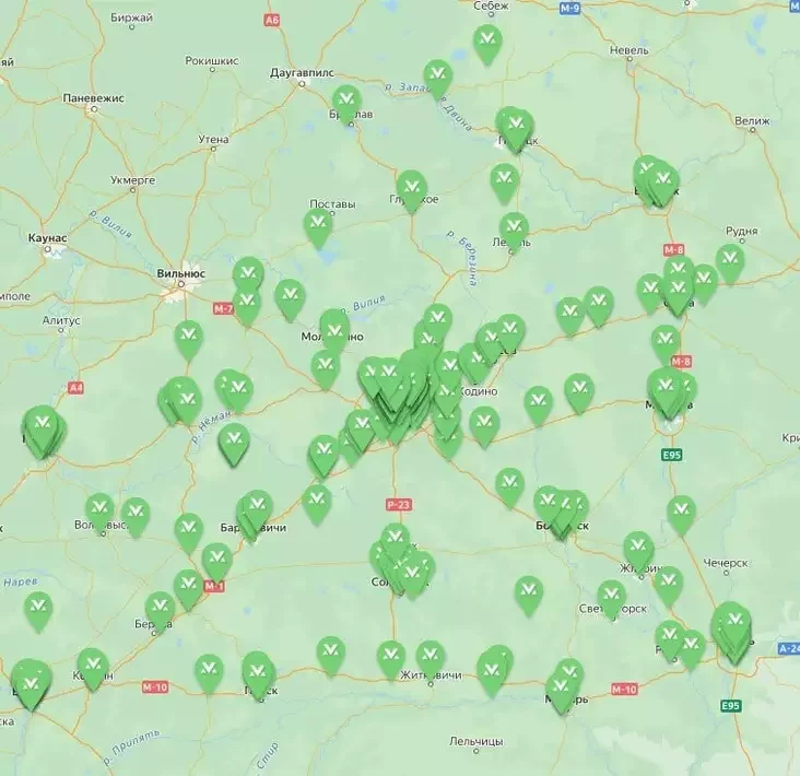 Map of Malanka charging stations in Belarus as of November 2025. Photo: malankabn.by