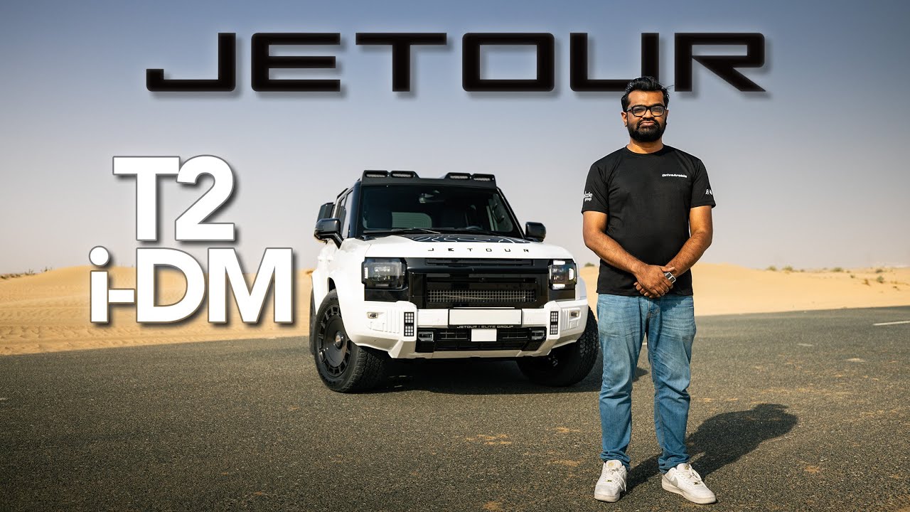 Welcome to Drive Arabia. Today we have the Jet T2, one of the hottests selling SUVs in the Middle East. [Music] The Jetu T2 was launched in January 2024 and it has gone on to become one of the fastests selling SUVs in the market. And now they have launched a new trim, the T2 IDM. Let’s deep dive into what makes the Jetru T2 so popular and see how the new IDM trim further enhances its appeal. [Music] The J2 T2 IDM gets a bold square edge design giving it a tough attitude inspired by classic off-roaders but re-imagined for the modern age. Up front you get a massive grill with a mesh pattern flanked by LED matrix headlights. You also get these DRL signature lamps and bumper lights which enhance its visibility and also make the T2 instantly recognizable. Looking at the Jetru T2 IDM from the side, you really notice its boxy silhouette. Some of the exterior features is these muscular fenders with exterior lights on them. You get these big wing mirrors with indicators on the side and cameras for the 360° view and these muscular shoulder lines which really enhance its off-road look. Now, if you’re wondering what these are, stay tuned to find out what they are later in the video. The rear design is also equally striking. On the roof, you get a spoiler with LED brake lamps, a tailgate mounted spare tire, painted bumpers at the back, blacked out tail lights with LED blocks inside, and also the T2 IDM badging. On the tailgate, you get a bunch of features. You get hooks which can hold up to 3 kgs, some cup holders, the emergency triangle, an emergency latch to open from inside, and a bottle opener. Looking inside, you get a bunch of more storage options. You get these carry nets, more hooks, and a power outlet. There’s also enough luggage space for the entire family for a month. [Music] Step inside and you are greeted with a very premium interior, a digital driver’s display, and a 15.6 in wide touchscreen infotainment system. Add into the fact that you also get suede roof lining, a panoramic sunroof, and ambient lighting, you really get a lot of luxury at this price tag. Stepping into the back, you can see I have ample leg room for myself. Some rear AC vents and some more charging options and also some more ambient lighting. It also gets wireless charging and a 12 speakeraker Sony sound system for a crisp audio experience. The seats are quite comfortable with adjustable cushions on the headrest. as well as ventilated seats. Coming back to the elements which you might have seen earlier in the video, Jetour actually offers a bunch of accessories for the T2 IDM. On this particular model, you get the side utility box, the roof rails, some off-road lights on top, and in the front you also have these cool looking decals and some painted black elements on the hood as well as painted bumpers. Also, you get a different set of rims. You can get these accessories fitted before you purchase the car or even after you bought it by going to your local UEI dealership. And these are just not the only accessories available. You also get a bunch of other stuff like a roof tent, different color combinations, different style rims, and a lots more other stuff. [Music] Underneath the commanding exterior lies a serious powerhouse. It gets a 1.5 L turbocharged engine connected to two electric motors which produces a staggering 600 horsepower and 910 Newton m of torque. This hybrid setup is enough to propel the T2 IDM from 0 to 100 km/h in just 5.5 seconds. This is what 600 horsepower feels like. It’s not just about raw power. The D2 IDM smart hybrid system gives you an electric only range of 140 km, which is enough for most daily commutes. And if you really want to go further, the combined range goes up to 1,000 km. The T2 IDM also gets a bunch of drive modes. You get eco, normal, sport mode, as well as snow, rock, mud, and most importantly, sand mode. In terms of off-road features, you get steep hill descent and a waiting depth of up to 70 cm which you can even monitor on your screen. There’s also the turn tank feature which lets you take tight turns when you’re off-roading. You get a bunch of safety features as well on the T2 IDM. You get uh lane departure warning, front collision warning, front collision avoidance, automatic braking, blind spot monitor, lane change assist, lane change warning, lane keep assist. Also, there is a rear collision warning as well. And you also get adaptive cruise control, which makes those long highway drives much more comfortable for the driver. The T2 gets a double wishbone front suspension and a multi-link rear suspension. So, this provides a good balance between onroad and off-road comfort. The steering wheel has a flat top and bottom and the firmness also changes according to the different rifles. A bold design, electrified performance and hybrid innovation. You get a lot in a very affordable package. The J2U T2 IDM costs just 159,000 dirhams. And for complete peace of mind, it also gets a 10-year warranty. This is Maru and thank you for watching.