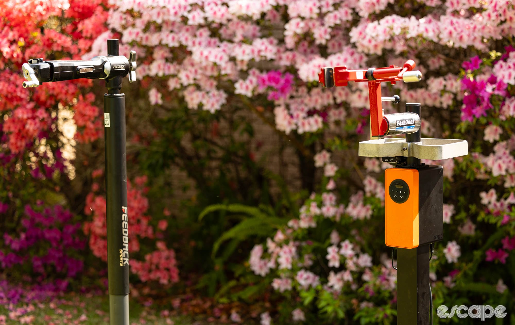 Feedback Sports Pro E Lift on the left, Remco Bike Lift on the right.