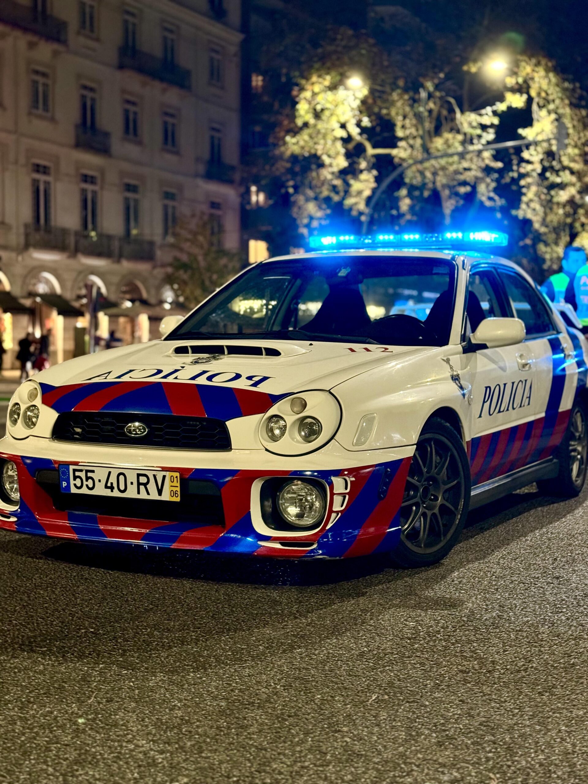 Portuguese Police [2001 Subaru Impreza WRX Prodrive] on duty at a running event in Lisbon