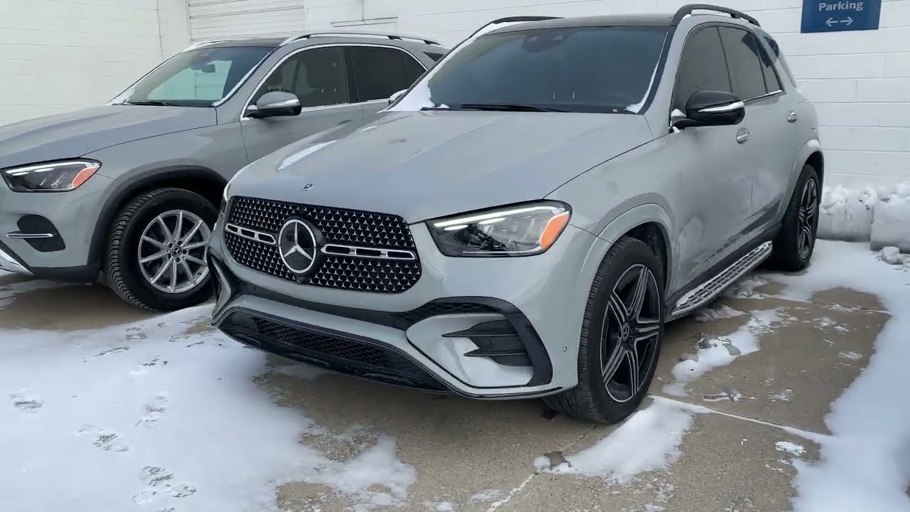 24 GLE. Yep. All right. So, the first vehicle I’m going to show you is P3703. It’s the 2024 GLE. Here’s the window sticker on it. So, it’s got heated and ventilated seats, the Burmeister surround sound. It’s got 19in wheels, panoramic roof, and the original sticker was 69085. So, that’s the 350. I’m going to show you now the 450. the 2024 GLE 450 formatic. It’s got driver assist. Does have distronic, does have the night package, AMG line package, which is the exterior package. Does have the exclusive trim, so heated and ventilated front seats. Burmeister surround sound premium package. also has the panoramic ro uh sunroof, aluminum brushed aluminum run, sorry, illuminated brushed aluminum running boards, winter package, and does have the 21in AMG five-spoke wheels with black accents. This one goes all the way for 82 870 window stickers. So, over 80,000. So, let’s compare these two real quick. I have them running outside. I have them parked next to each other so it’s easy to tell. So, the first one I’m going to show you is the 450. You can notice the grill right off the bat compared to the 350. You can also notice the bumpers, different style bumper, same color. These are 21in wheels with the AMG 2754521. This is the 19inch wheel. 275519. See the running boards right here. 350 doesn’t have it. See the arches here are painted compared to this. This is a 350. This is a 450. You also see same exact color. Both of them are formatics. This one’s the 450E plugin. So, if I pop the trunk charger right here to plug in at home, power rear lift gate. This one, same thing. I can open it up for you. Same thing with this one. Close that. So, as I go to the 350, we’ll walk around. Make sure. All right, let’s hop in. So, we’re going to hop in the 350 first. Black interior, big roof, heated and ventilated seats. Brewmeister, telescoping wheel. We’ll hop in. 7,50 miles on it. It’s a really, really nice vehicle. You can see the lighting as well. All right, let’s go to the 450. So, here’s the 450. You’ll notice there’s a plugin for the charger right here. Oops, it’s a little cold. Sorry, my hands aren’t working as good. Just plug it in here at home or on the go. Hop in. So, this is how dark the windows are tinted. You can see compared to that one. It’s quite some difference. Leather seats. This one also has heated steering wheel. Also has heated and ventilated seats. This one also has Distronic. Also see if this one has 2211 on it. Reverse the same camera. Lightning’s customized anyone you want. Any I’m sorry, any color you want. And that’s pretty much it. This should give you a little bit more details with the fuel economy. 381 horsepower combined, 479 pound feet of torque, 9-speed automatic, all the packages listed, and there’s your fuel economy. So, it’s pretty cool stuff. Um, I would lean towards the 450 E as far as a uh value proposition. So, steering wheel is also a little bit different. Oh, just confirm cuz they’re so alike in color. Oh, yeah. They are the same wheel. I’m sorry. Very good. Hopefully this uh answers your questions on the differences. I know we can say all these options, but actually physically seeing it side to side, you can really see the difference between the 350 and a 450 plug-in hybrid. It just comes down to which one you like better. That’s pretty much it.