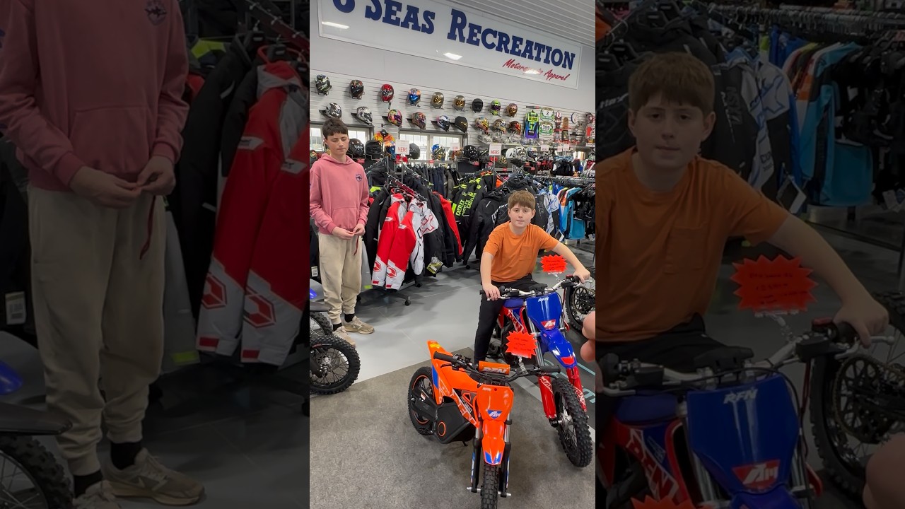 All right, guys. Check this out. Brax, what’s going on today? >> We picked up some RFNs. >> We are now an RFN dealer. Check this out. A 74VT 1916 wheel size full-blown off-road suspension. This is the Aries, which is identical to like what the Beta Explore was. This is who was making that for Beta. Kaden is sitting on the E5 and comparable to that is like a TTR 110. Check this out. Exactly the same size. Price-wise, they’re within 100 bucks of each other. going be very easy for families to get kids involved. Over here we have the SX E500. Very excited about that because they’re only $7.99, 800 bucks. There’s three colorways. For example, here’s a Husky E2 and then a Suzuki DRZ50. And Ken, there’s one more size, right? There is a >> E8, which is going to be comparable to like a YZ65. >> Stay tuned on the channel cuz we got a bunch of videos coming. Enjoy the ride. See you on the trail.