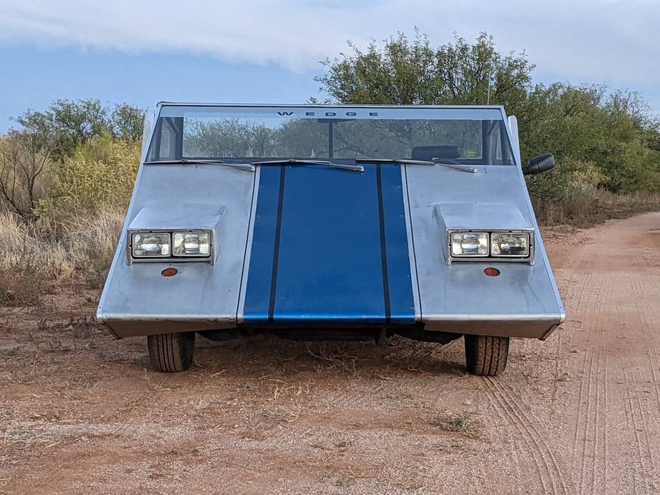 The Wedge, a car that was built by a GM employee using a 1963 Pontiac LeMans chassis, it has a Buick 215-ci V8 engine that is mid-engined and also sports a Chevy Corvair transaxle