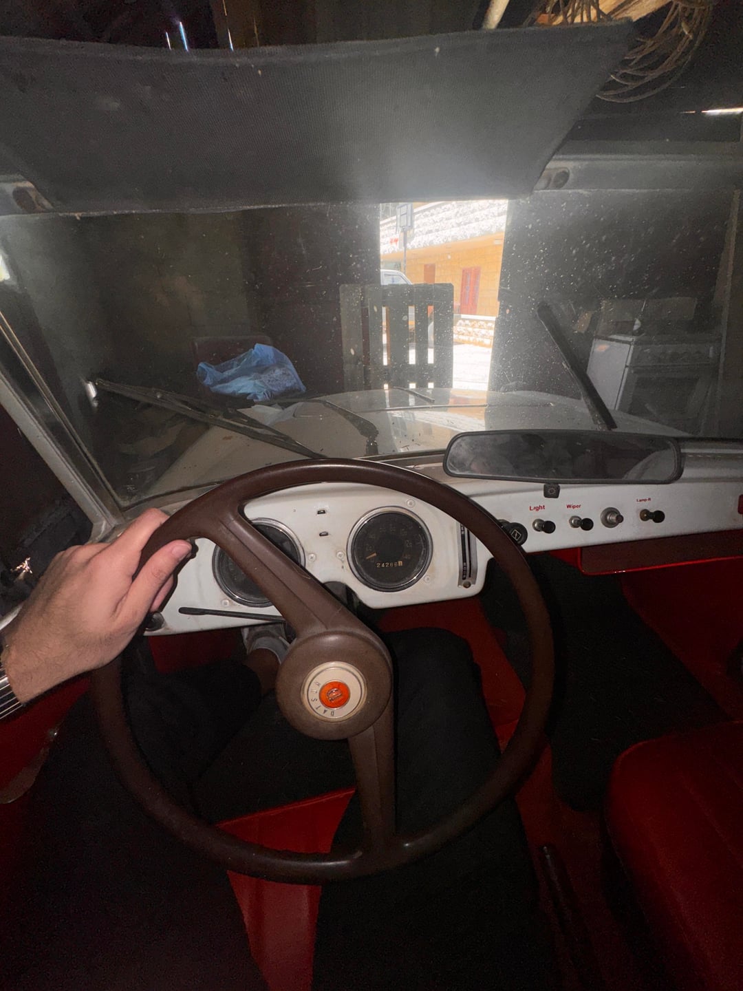 I opened a small shed next to our family home and found this Datsun Fairlady SPL213. My great grandfather was the first owner of the car and it’s been parked there for years.