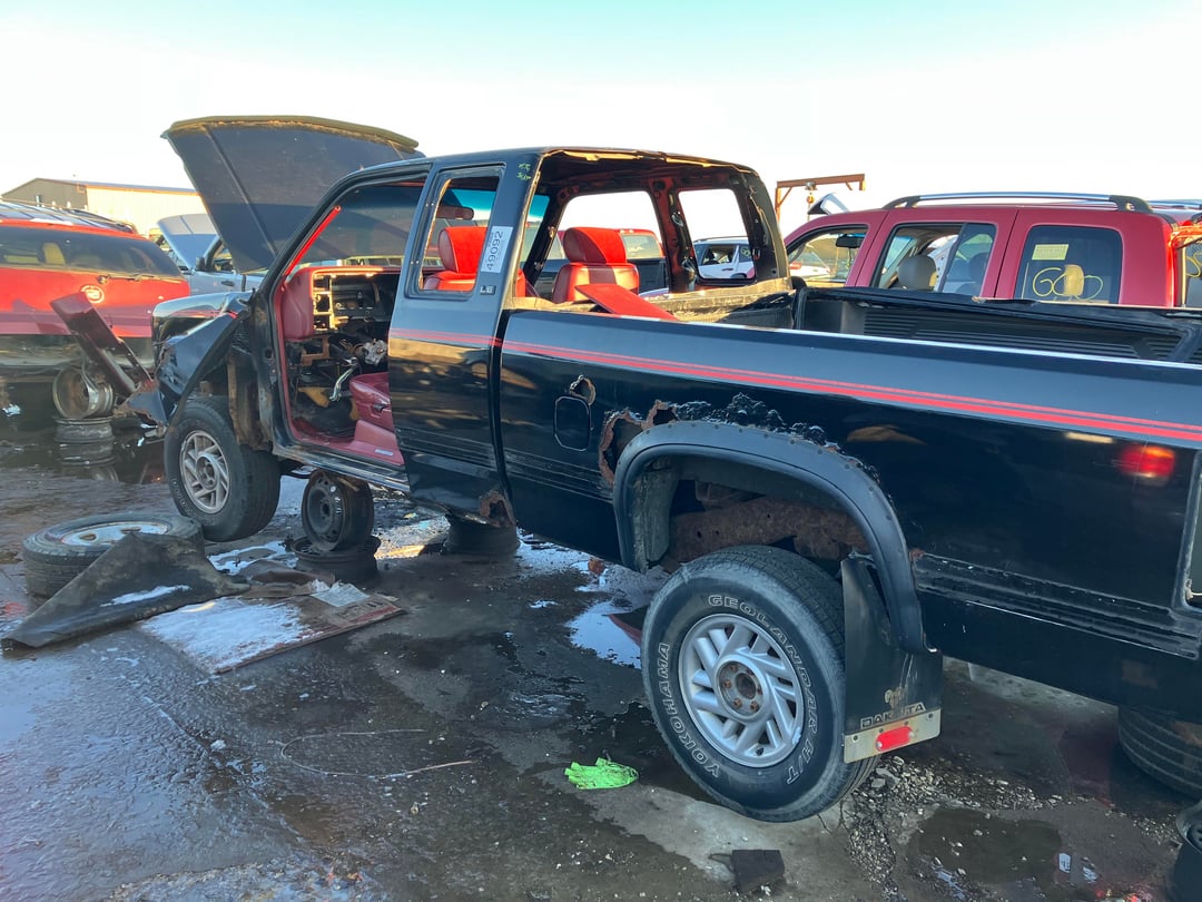 While Chrysler vehicles are somewhat mediocre I still felt a little sad seeing this beauty of a first gen Dakota sitting there picked apart. This was someoneβs pride and joy at one point in time, would love to have a truck like it one day.