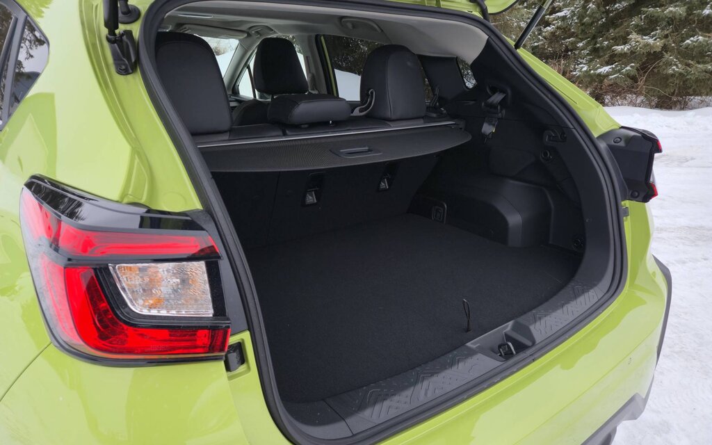 Other than that, the Crosstrek Hybrid boasts essentially the same desirable features and attributes found in other models, including a good driving position, comfortable and supportive seats, a 63-litre fuel tank, 1,500lb towing capacity and 220mm ground clearance. Legroom in both rows is commendable, but on the flip side, cargo space is limited. Already one of the smallest in its class, the trunk shrinks from 564 to 527 litres due to the hybrid system’s battery (and from 1,549 to 1,433 litres with the rear seats folded down). More capacious crossovers are easy to find.