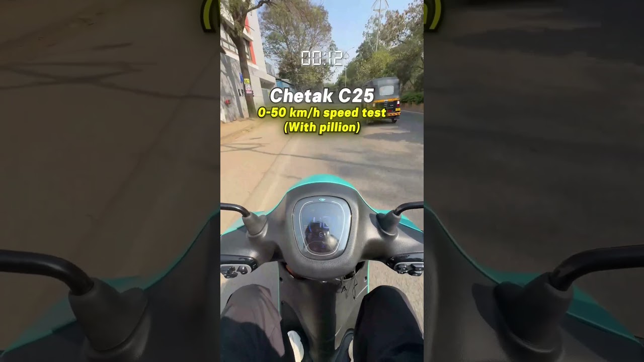 Load condition includes rider plus pillion. Time taken for 0 to 50 kmph is 19 seconds. @chetak_official #electricvehicles #evindia #indiaev #bajajchetak #c25 #speedtest
