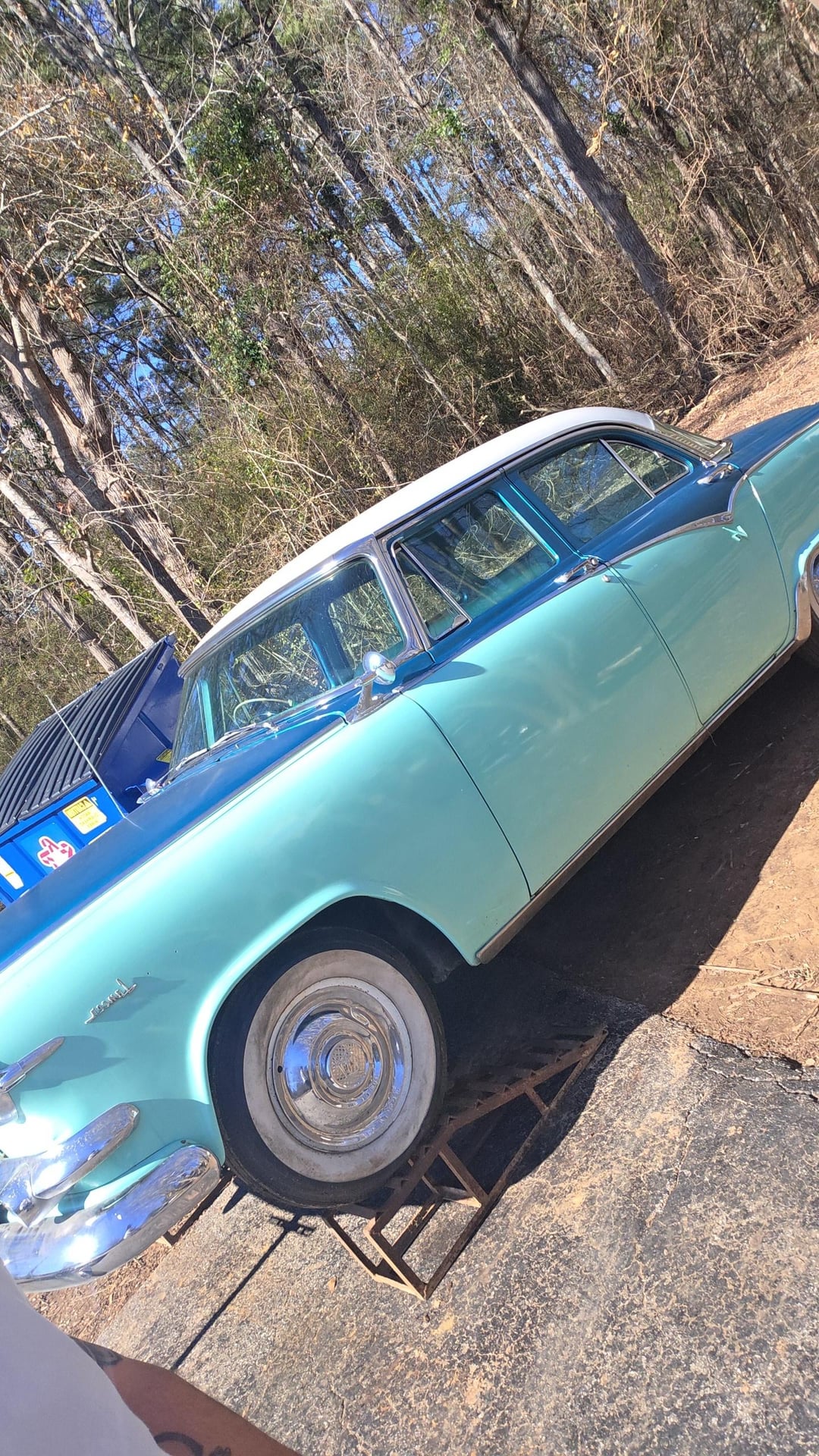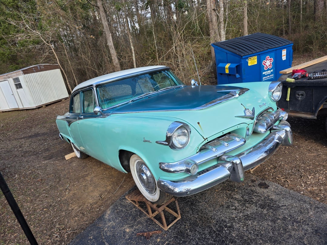 So I've recently acquired a 1955 Dodge royal Lancer 4 door. Yes it's a 4 door lancer NOT a custom etc. Factory paint is pretty solid shape no body damage etc, was supposedly stored inside its entire life but does have some rust on rockers but nothing serious. The paint has some chips and the hood has a few rust bubbles but not horrible.