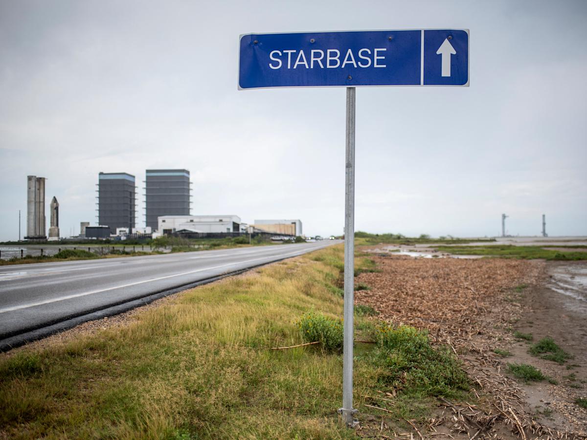 A sign pointing towards Starbase is seen on the road outside Brownsville, Texas on May 28, 2025. A sign pointing towards Starbase is seen on the road outside Brownsville, Texas on May 28, 2025.SERGIO FLORES/AFP via Getty Images