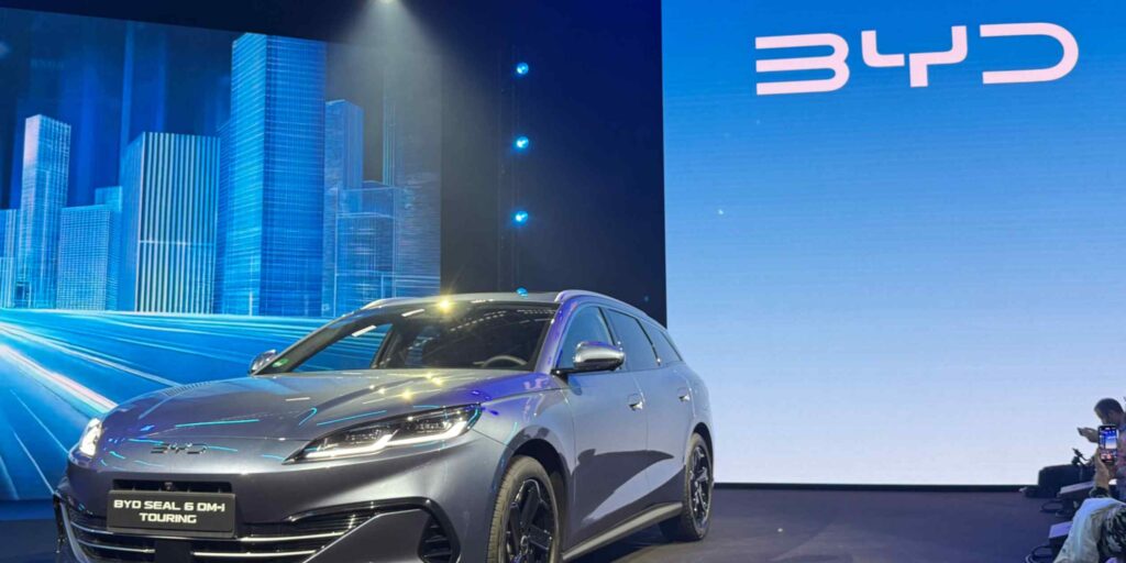 BYD’s Seal 6 station wagon. The Chinese automaker hopes such plug-in hybrids will appeal to Japanese consumers. (Photo by Eiki Hayashi)
