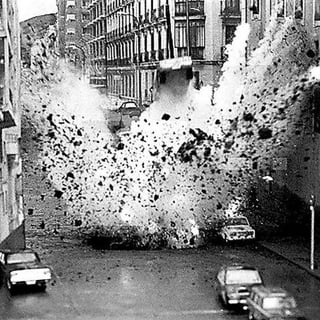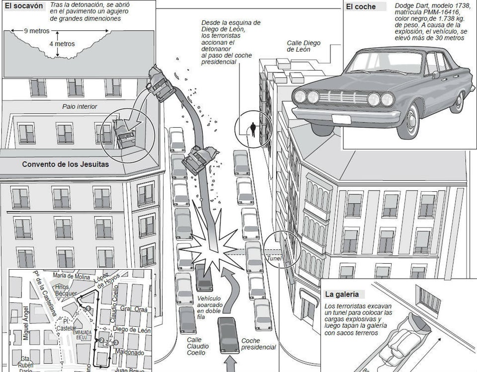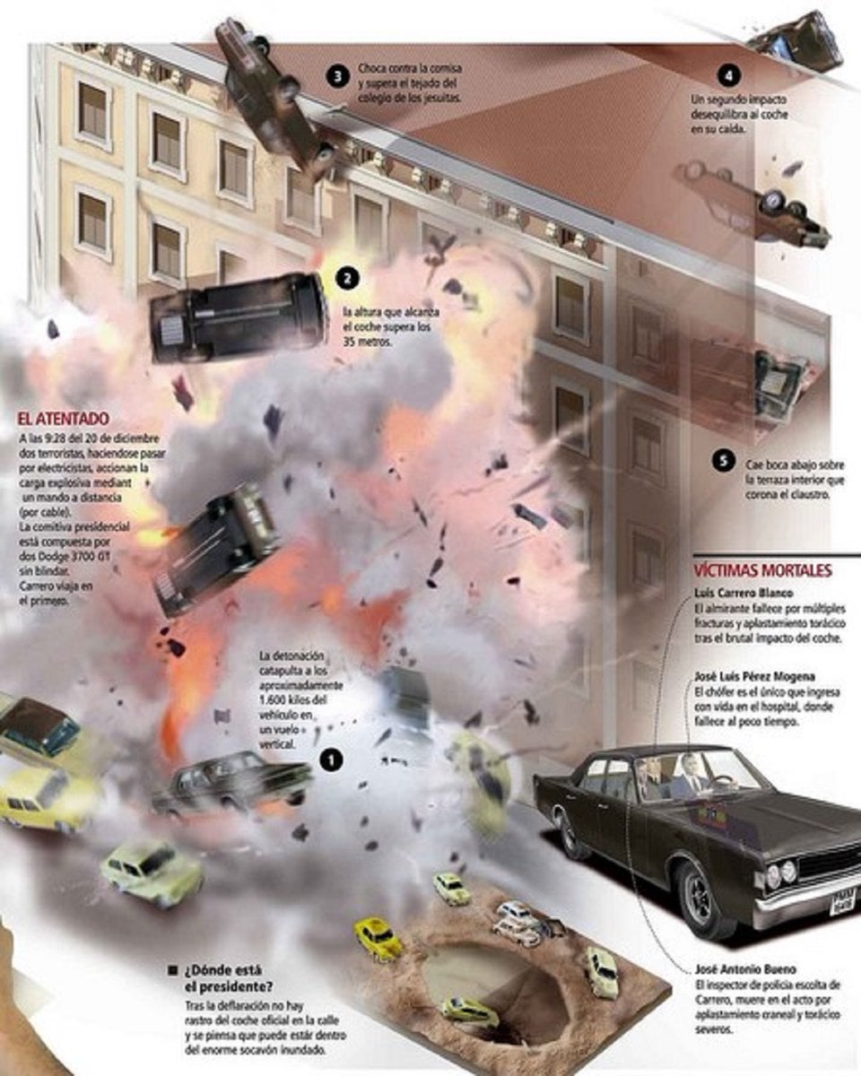 In 1973, Spanish Prime Minister Luis Carrero Blanco was killed when his Dodge 3700 GT was blasted by a bomb planted in the road five stories over a church into a second floor terrace on the other side. The wrecked car has been preserved to this date in a museum