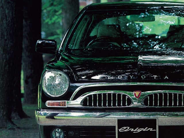It features a "retro-modern" style inspired by the 1955 Toyopet Crown RS, including signature suicide doors (rear-hinged) and a distinct upright radiator grille.