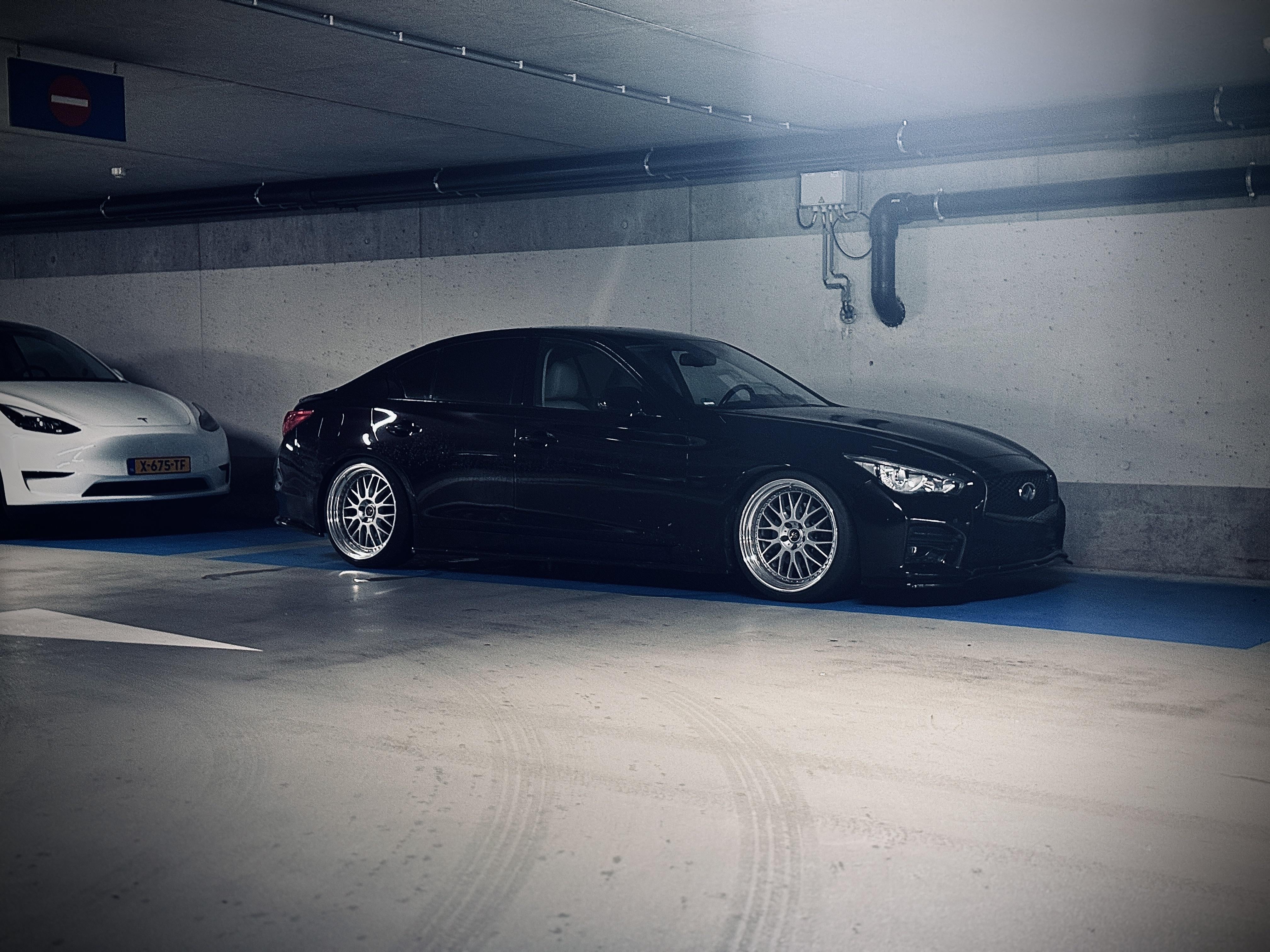 Infiniti Q50D (2.2 OM651 diesel). 1820KG curb weight. Currently rocking BC Racing BR coilovers. 9K front 4.5K rear. Rides nice but has some flaws. Over larger dips in the road the car really compresses. Even worse when there are passengers in the car. It is pretty comfortable tho. I want to go 1-1.5cm lower in the future when I add aircups (for obstacles) and am afraid of crashing the frame on the ground with my current spring rates at a lower ride height.