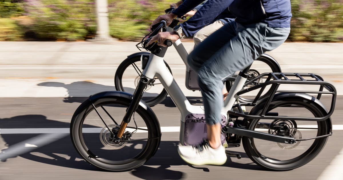 Cyclists ride Also TM-B electric bikes near the company’s headquarters in Palo Alto, California, US, on Tuesday, Oct. 14, 2025. Also, the micromobility startup spun out of Rivian Automotive Inc., has unveiled its first consumer product: an electric b