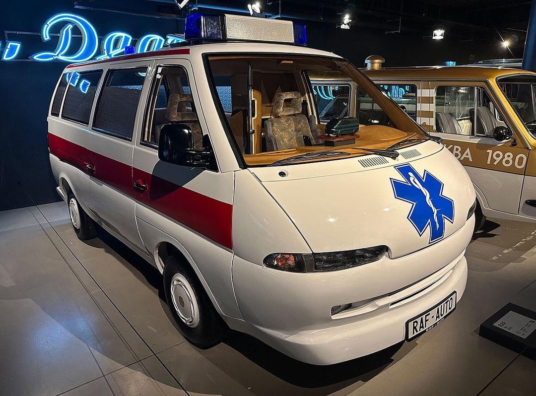 Introduced in 1994 as a replacement for RAF 2203. Only two prototypes were introduced (one minivan and one ambulance). Both concepts were lost after the bankruptcy but were found and shown to public in 2011. It used hydropneumatic suspension, much like some Citroën vehicles. The minivan version could have seated 12 people and reach speed up to 170 km/h. Ambulance version could have seated 4 with 1 patient bed