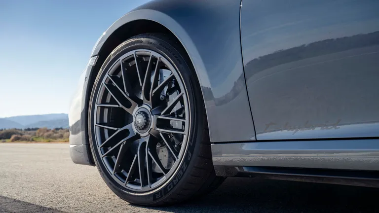 With the largest carbon-ceramic brakes ever fitted to a 911, the 2026 Turbo S stopped from 60 mph in 95 feet, 1 foot behind the 918 Spyder. At 1.11 g average on the skidpad, it’s also close to its hybrid ancestor’s 1.12 g. Notably, the common 992.2 Carrera S and GTS T-Hybrid both match it in braking and skidpad grip. Weight may be a factor; at 3,820 pounds, the Turbo S hybrid is heavier than those 991s, though the Turbo S Lightweight needed 98 feet despite weighing 270 pounds less.