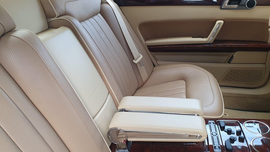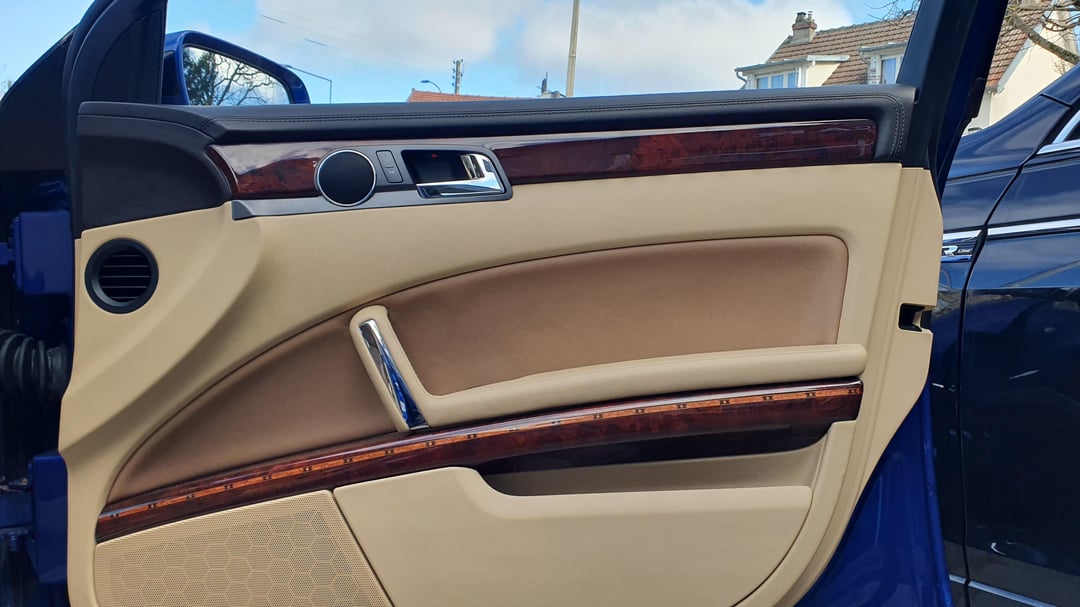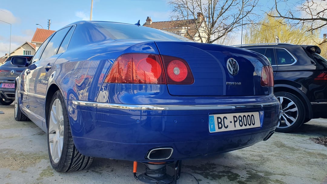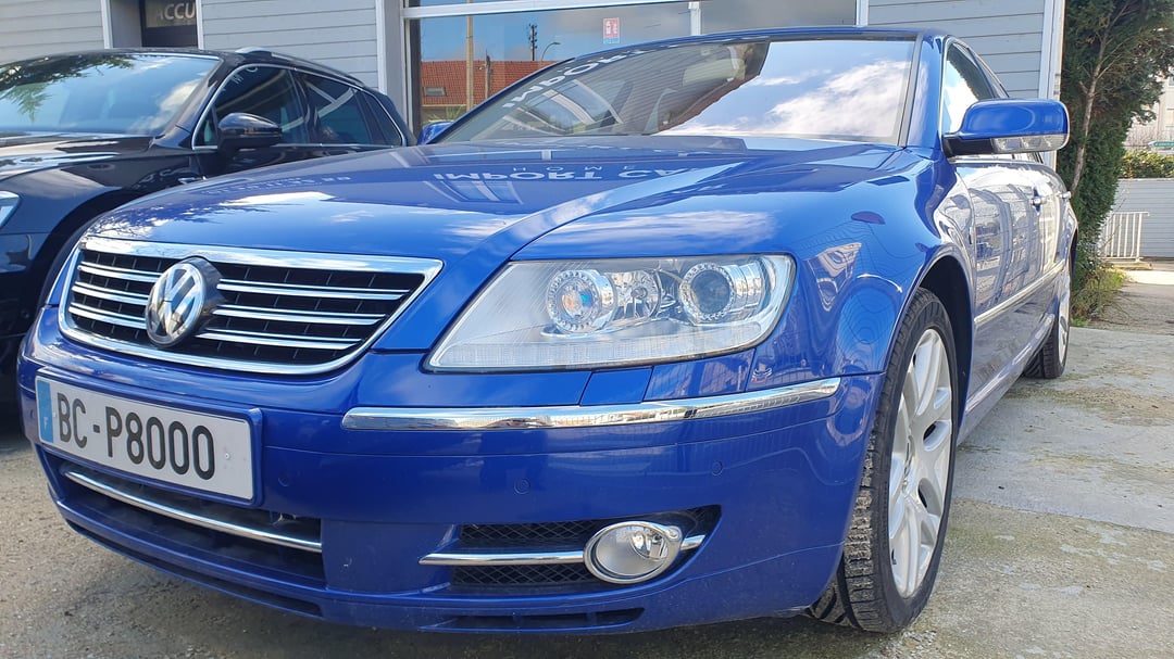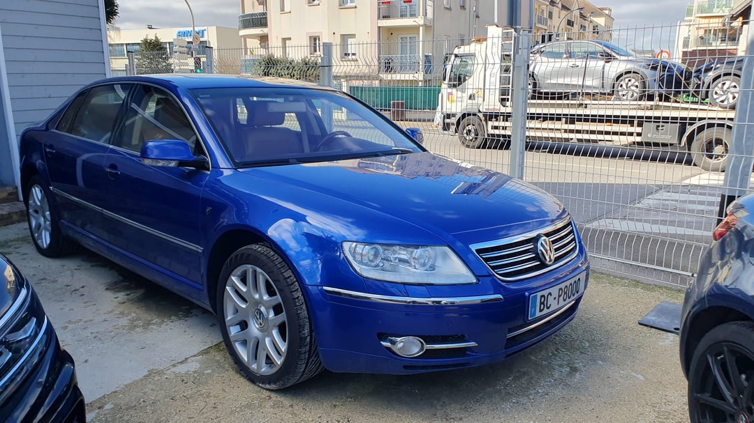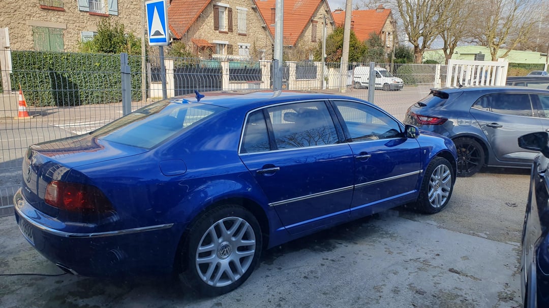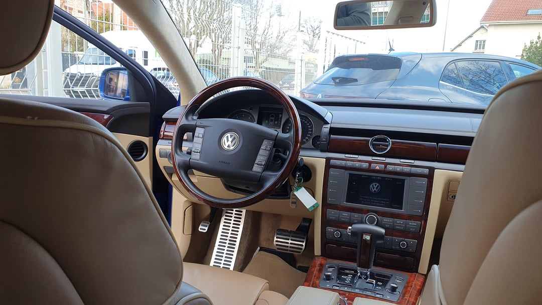 Absolutely mint '09 4.2 V8 Phaeton Individual with every options you could imagine. Dual Tv in the headrests, 4 seaters, beautiful wood with insert details, giant fridge between the rear seats, IR heated glass. Beautiful blue R32 color and cream interior in immaculate condition. Made for order for an european auto show and rarely driven afterward being purchased by a Porsche dealer network in Italy. Only 53.175mi (85.577km). Clean title. For sale in France 25mi west of Paris. Randomly drove next to a dealer lot with this beauty standing there I had to stop and get closer with nice photos to share with you all. Enjoy!