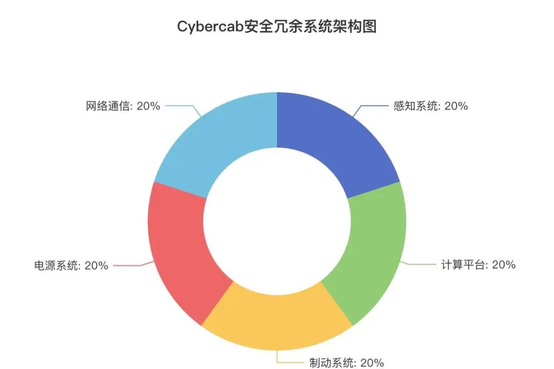 After canceling the manual driving interface, safety becomes the most core proposition of the Cybercab. Tesla’s solution is to build a full – dimensional redundant system, with dual – backup designs in five key areas: perception, computing power, braking, power supply, and network, to ensure that when any single system fails, the vehicle can still operate safely or implement the minimum – risk strategy.