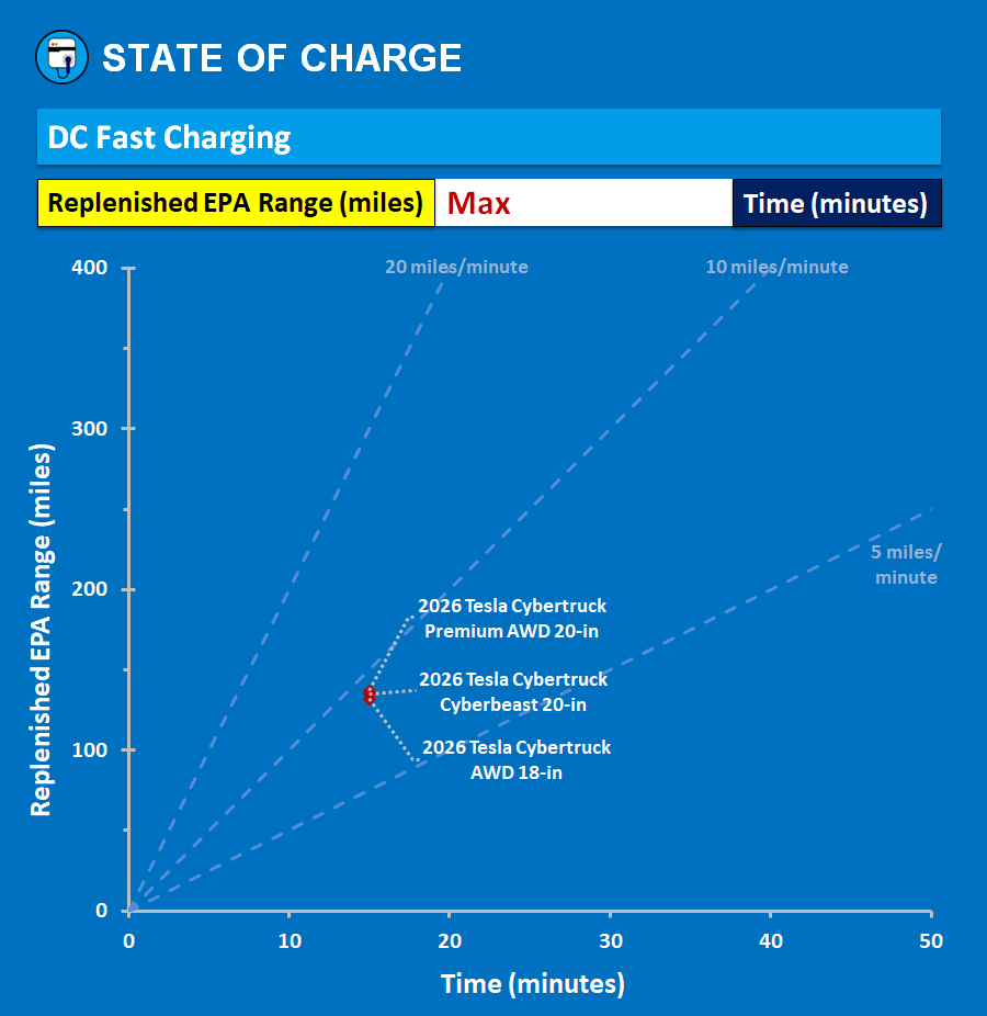2026 Tesla Cybertruck: Range replenishment rate during DC fast charging — March 3, 2026. (Image credit: State Of Charge)