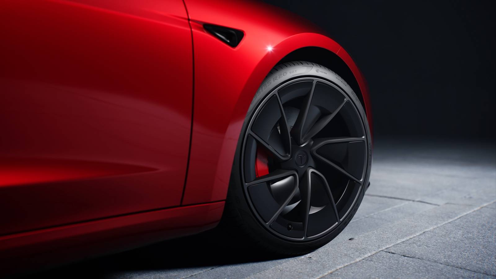 front quarter shot of a red 2023 Tesla Model 3 Performance parkedTesla