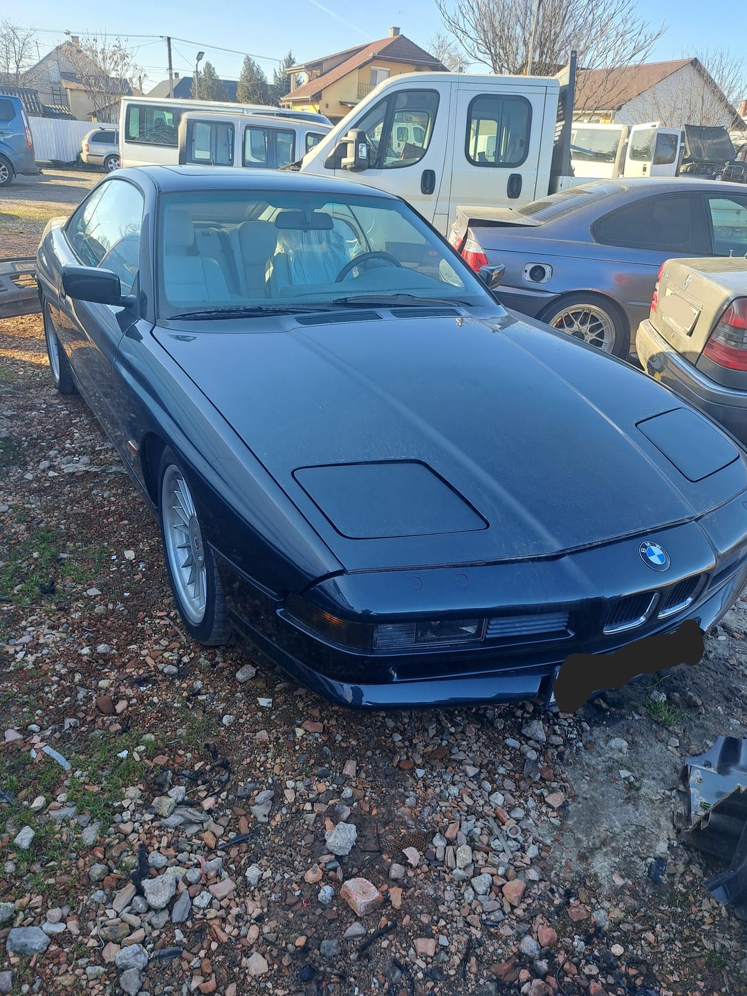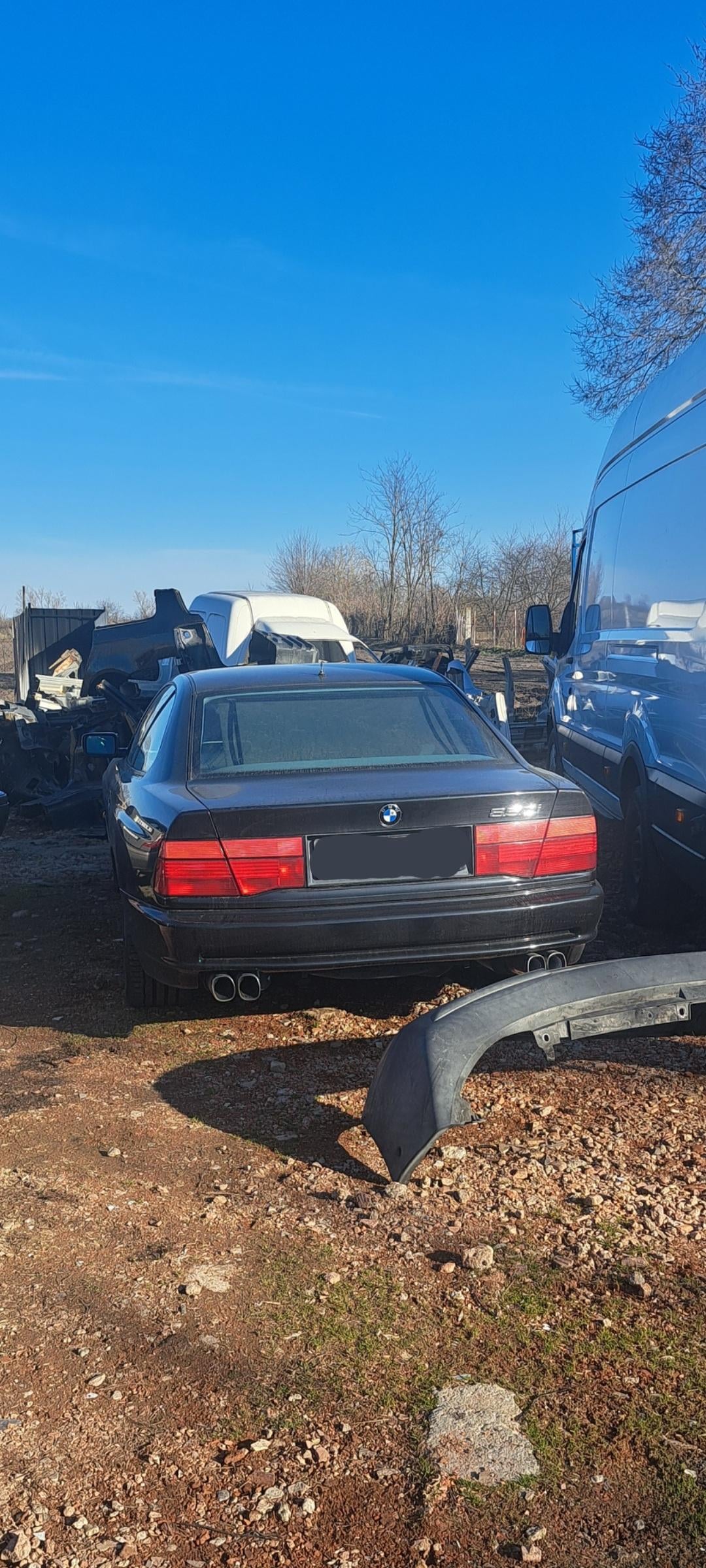 [BMW 850i] rolled in for some suspension work, waiting for parts. 300k km on the clock.
