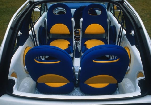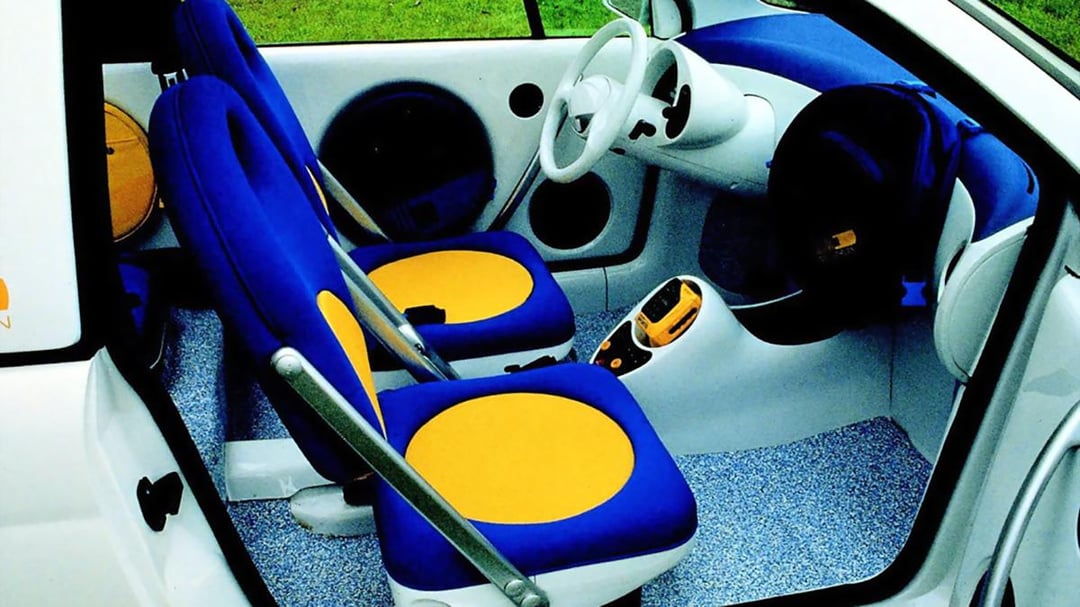 Despite its charm, Fiat discarded the project due to high production costs for the hybrid system and aluminum body.