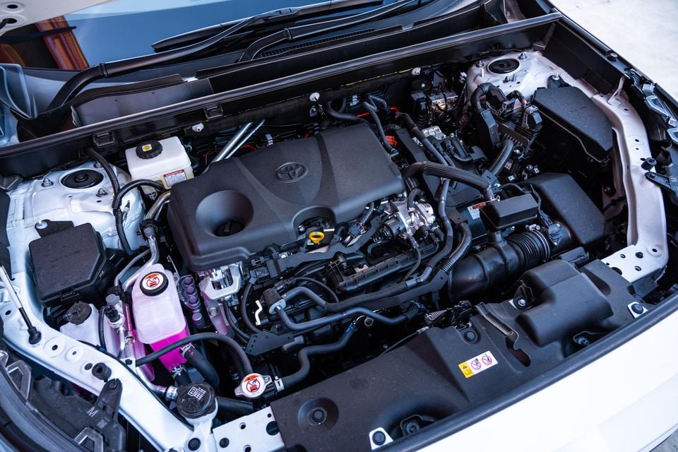 With total outputs of 163kW of power and 221Nm of torque, the RAV4 can move briskly away from the lights and the transition from electric to combustion power is generally unnoticeable.