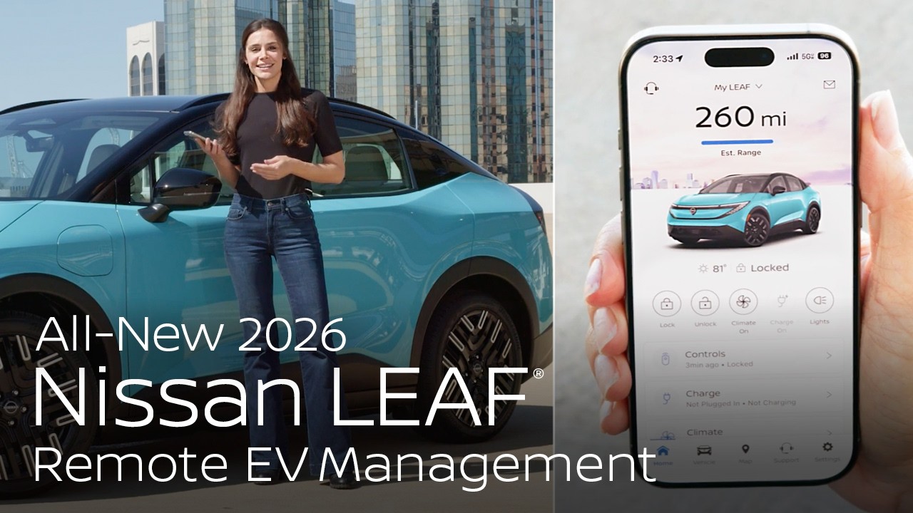 Experience how the 2026 Nissan LEAF helps you manage charging, range, and connected EV features through the intuitive and convenient MyNISSAN App. This video walks you through key tools for customizing charging, planning routes, and accessing the NISSAN ENERGY Charge Network.