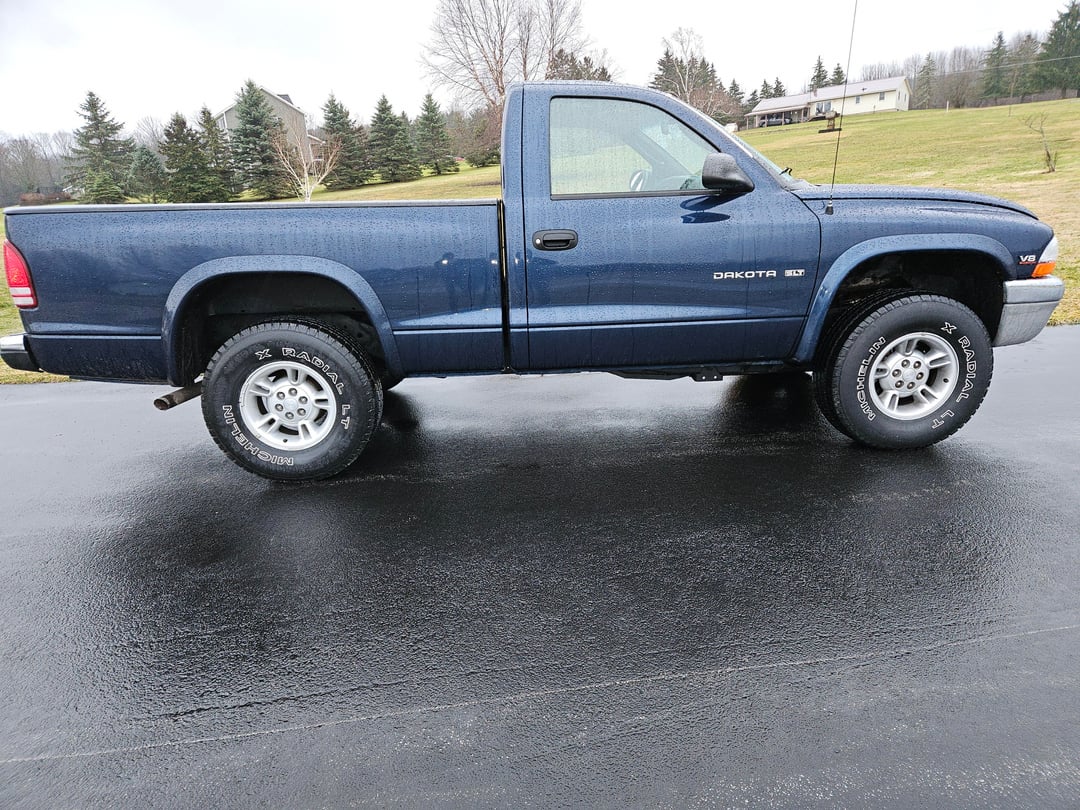 One owner dodge dakota, 80k, guy custom ordered it from dodge brand new with the 4.7 v8, 5 speed manual and 4×4. Always kept in the garage, never seen winters. Im undercoating this immediately dont you all worry. And of course outting an exhaust on it cause we wanna hear that v8 rumble. In love with this thing man, and this is the daily:)