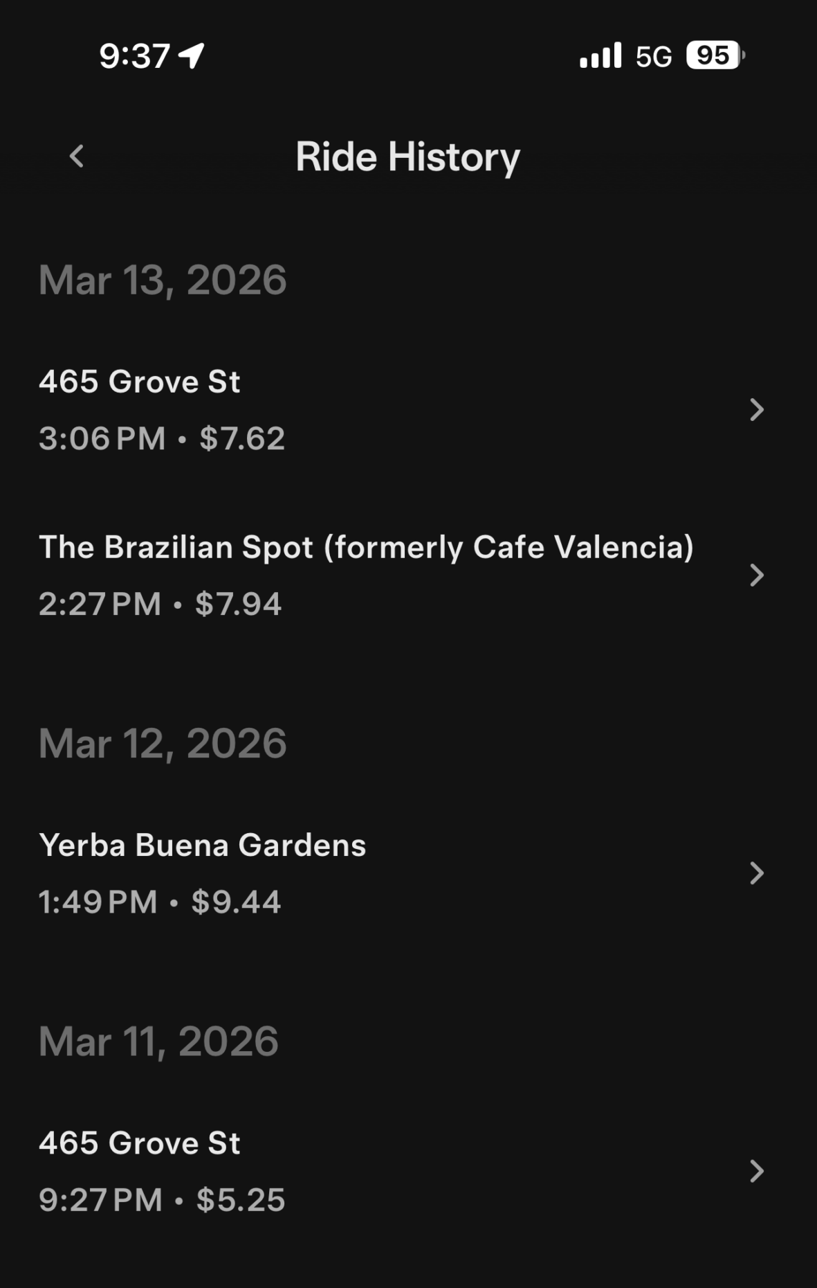 Partial ride history from the Robotaxi App.