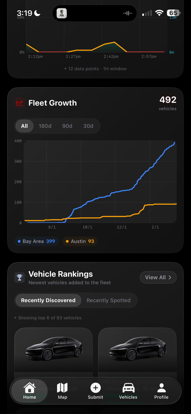 Screenshot of Robotaxi Tracker showing slow growth in vehicles.
