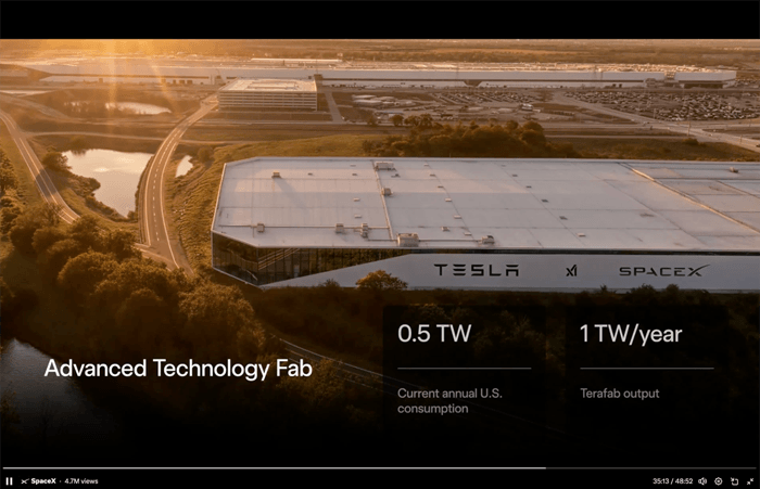 So in parallel, Tesla and SpaceX will build TeraFab.
