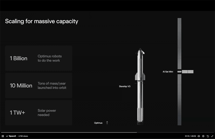 The AI Sat Mini will be a 100-kilowatt satellite, and Musk said that “future satellites will go to the megawatt range,” which obviously means that they will be much larger by an order of magnitude.