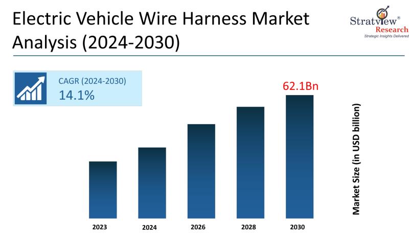 The electric vehicle wire harness market refers to the industry focused on wiring systems that transmit power and data across various EV components including batteries, powertrains, lighting systems, and electronic modules. According to Stratview Research, the market is expected to reach US$ 62.1 billion by 2030, growing at a CAGR of 14.1% during the forecast period of 2024-2030. The most significant growth driver is the rapid expansion of the electric vehicle industry, as EVs require complex wiring architectures due to higher electronic content and power distribution needs compared to conventional vehicles.