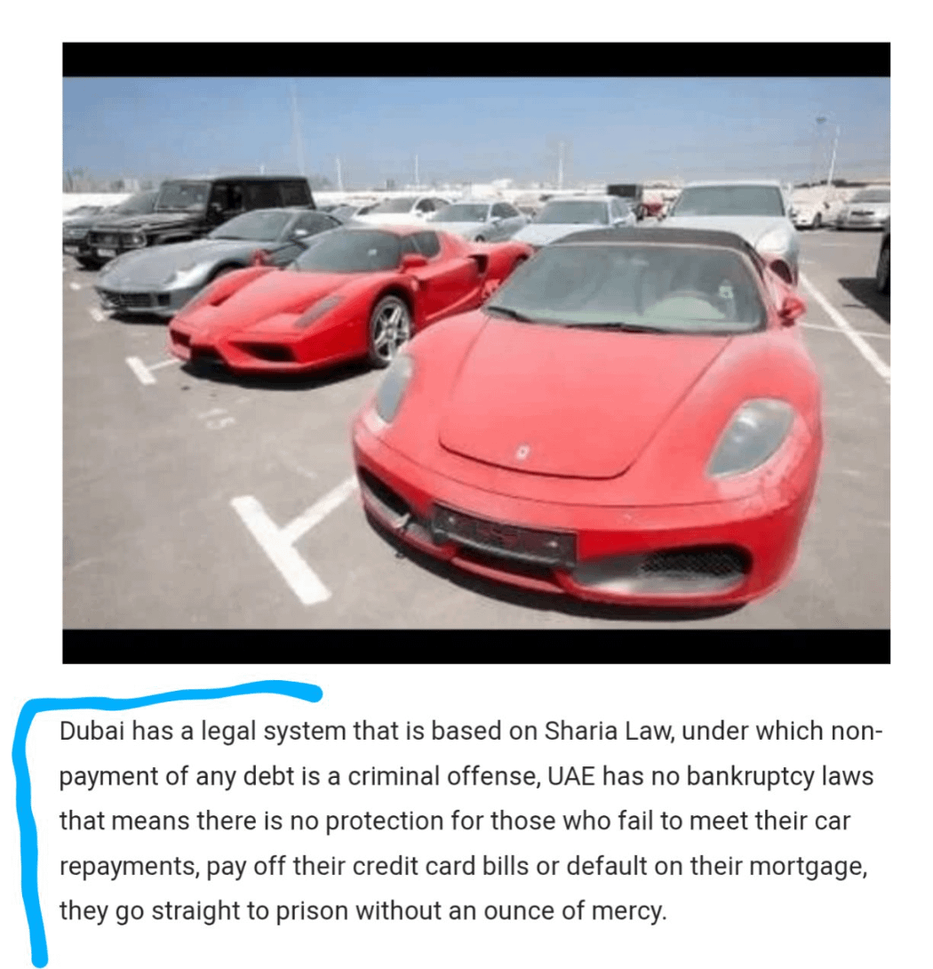 I think this article is fascinating about why there are so many abandoned supercars in Dubai. This was written 4 years ago but I'm just learning about it now. Wonder if anything has changed, or the problem just keeps compounding. Seems like a lucrative potential business model to solve this with the gov't of Dubai.