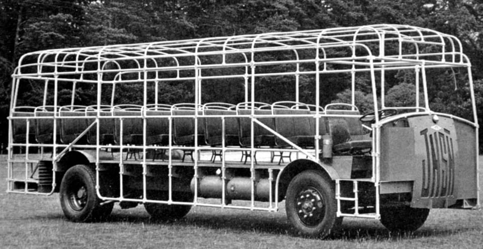 The Jensen Light Commercial ('JNSN') was a rather unique vehicle built by Jensen Motors Ltd, of West Bromwich, England, from 1951 to 1956. Building on pre-war work, this lightweight alloy tube design was available in Lorry (flatbed), Pantechnicon (panel van), or Coach (Bus). The unique removable radiator cover and engine sub-frame allowed the radiator, engine and gearbox to be removed as a single unit in just 30 minutes, greatly easing maintenance.