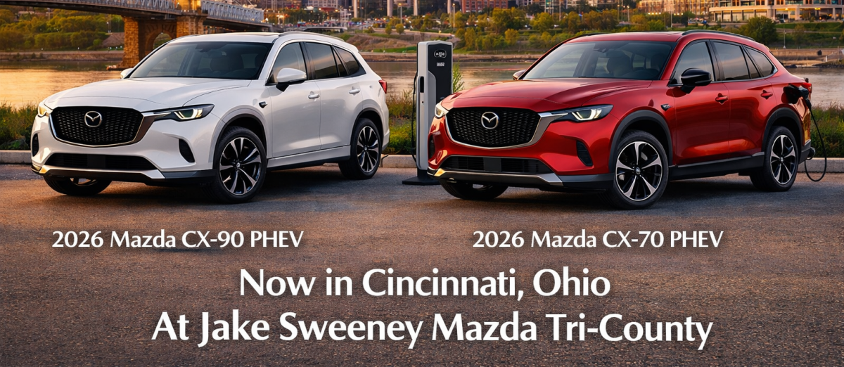 Jake Sweeney Mazda Tri-County is spotlighting Mazda’s flagship plug-in hybrid SUVs—the 2026 Mazda CX-90 PHEV and Mazda CX-70 PHEV—bringing electrified performance, luxury design, and improved efficiency to drivers throughout Cincinnati and surrounding communities as demand for plug-in hybrid SUVs continues to grow.