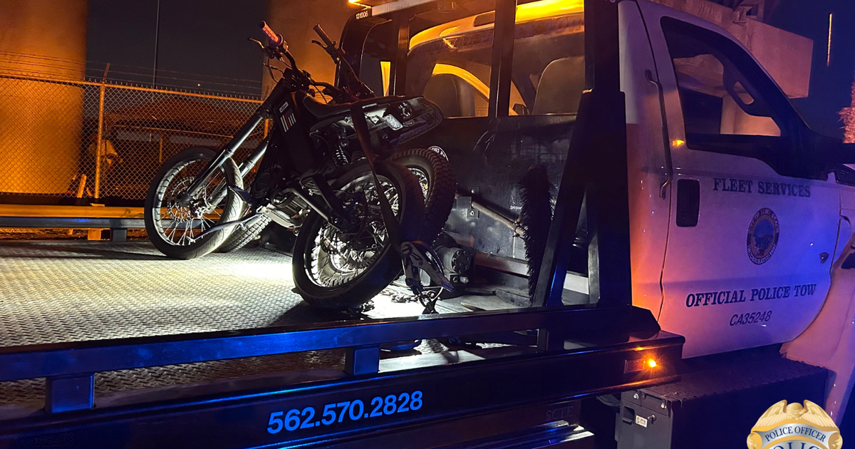 The Long Beach Police Department said officers broke up a massive electric-bike street takeover on Saturday night, resulting in the arrest of a teenager.