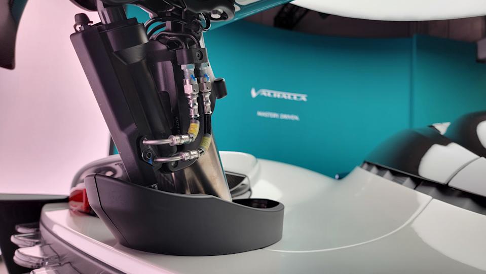 The last of those is where things get really interesting, because while the Valhalla’s suspension may not be hydraulically augmented, its aerodynamics package is. The Valhalla has active elements in both the front and rear of the car. The front wing, located against its undertray beneath the nose, deploys to direct airflow around the underbody. At high speeds, it also routes some incoming air around the Valhalla’s cooling elements to reduce drag when natural airflow is more capable of handling the car’s cooling needs.